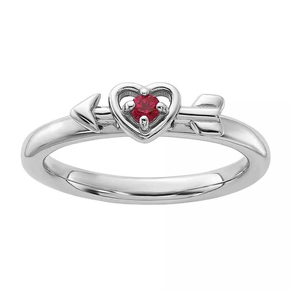Add a pop of color to your stackable ring collection with this sterling silver Stacks & Stones gemstone heart and arrow ring. Add a pop of color to your stackable ring collection with this sterling silver Stacks & Stones gemstone heart and arrow ring. Gemstone accents Metal: sterling silver Packaging: boxed Plating: rhodium Width: 2.5 mm Finish: polished Gemstones may have been treated to enhance their appearance. Special care may be required. Please visit our Gemstone Treatment & Special Care Guide for more information. Size: 9. Gender: female. Age Group: adult.