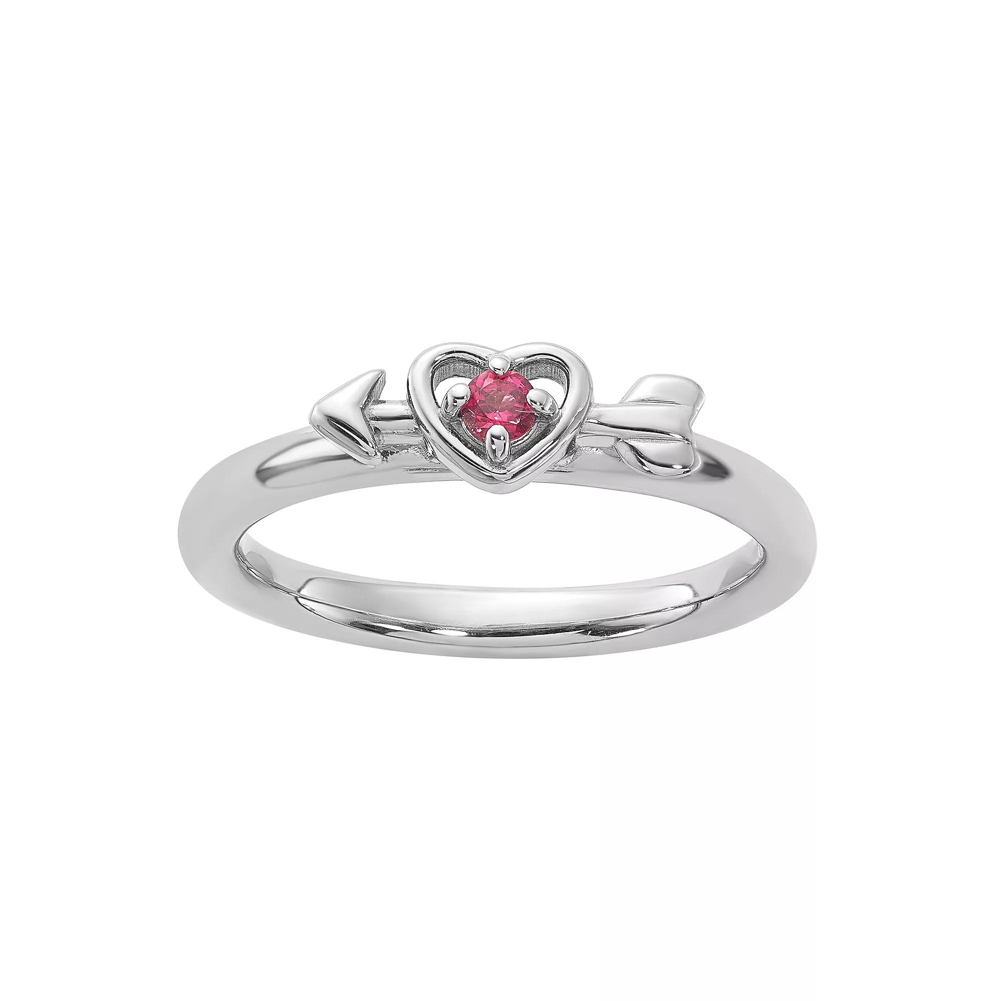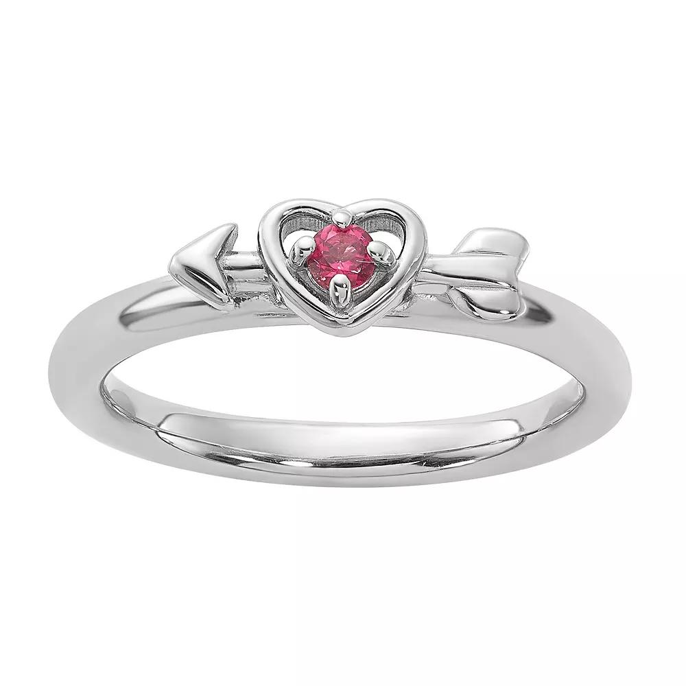 Add a pop of color to your stackable ring collection with this sterling silver Stacks & Stones gemstone heart and arrow ring. Add a pop of color to your stackable ring collection with this sterling silver Stacks & Stones gemstone heart and arrow ring. Gemstone accents Metal: sterling silver Packaging: boxed Plating: rhodium Width: 2.5 mm Finish: polished Gemstones may have been treated to enhance their appearance. Special care may be required. Please visit our Gemstone Treatment & Special Care Guide for more information. Size: 9. Color: Pink. Gender: female. Age Group: adult.