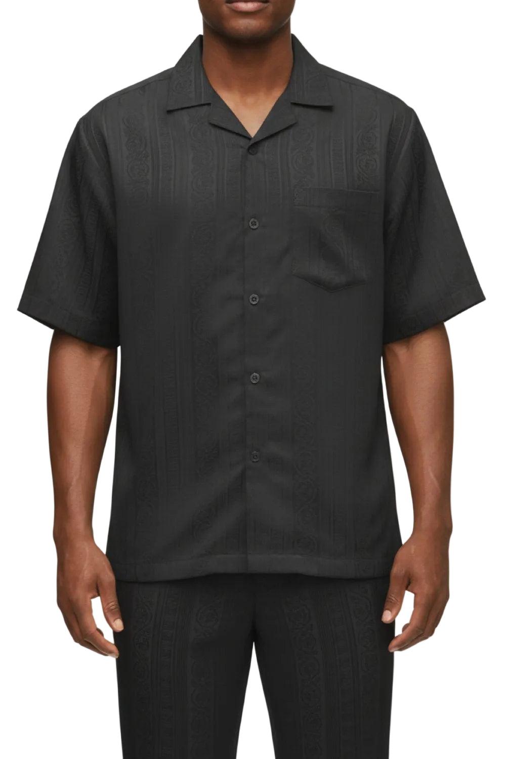 Stacy Adams - Men’s Black Abstract Design 2 Piece Walking Suit with Shorts Set Male