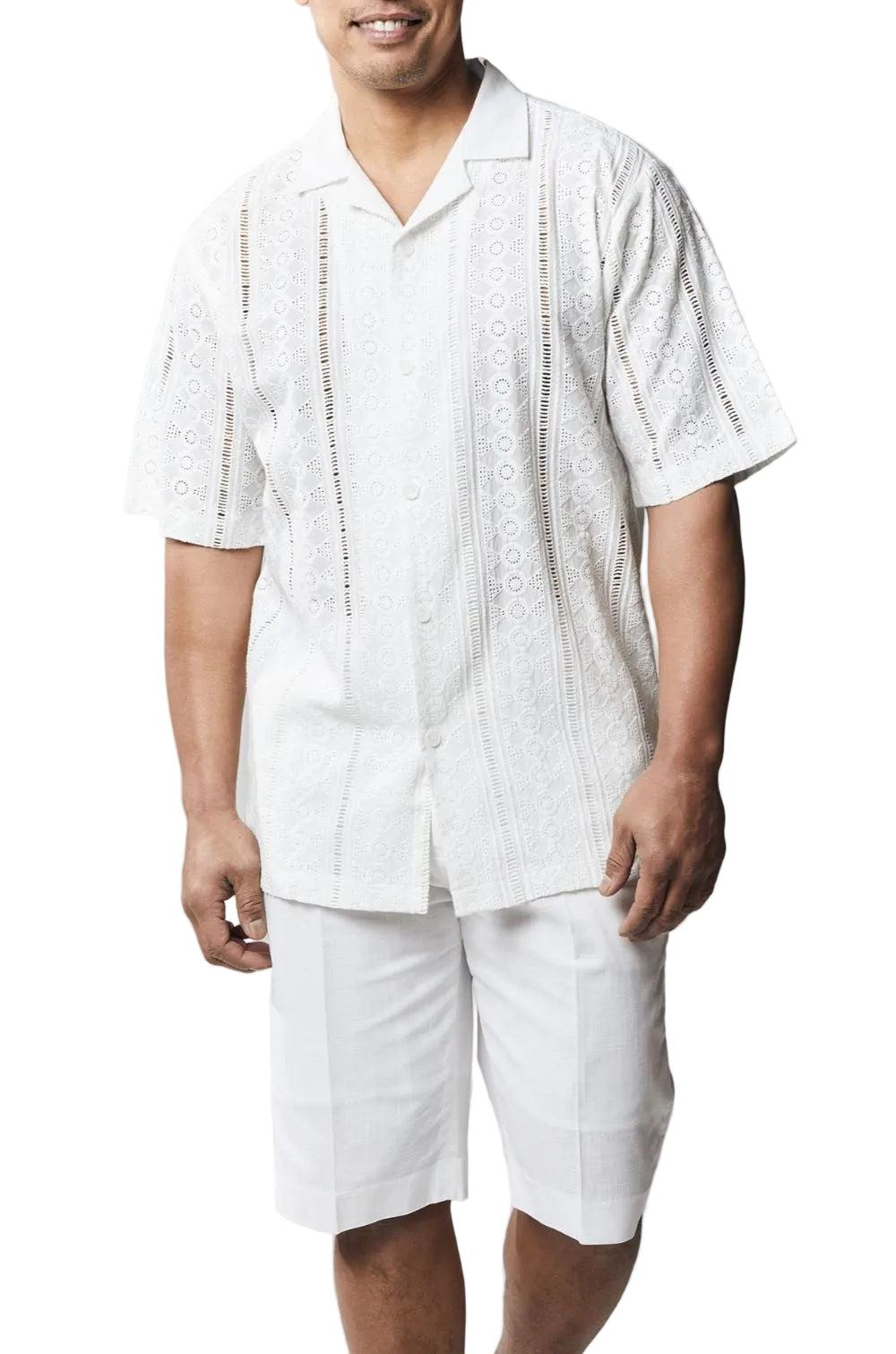 Stacy Adams - Men’s White Linen Walking Suit with Shorts Set Male