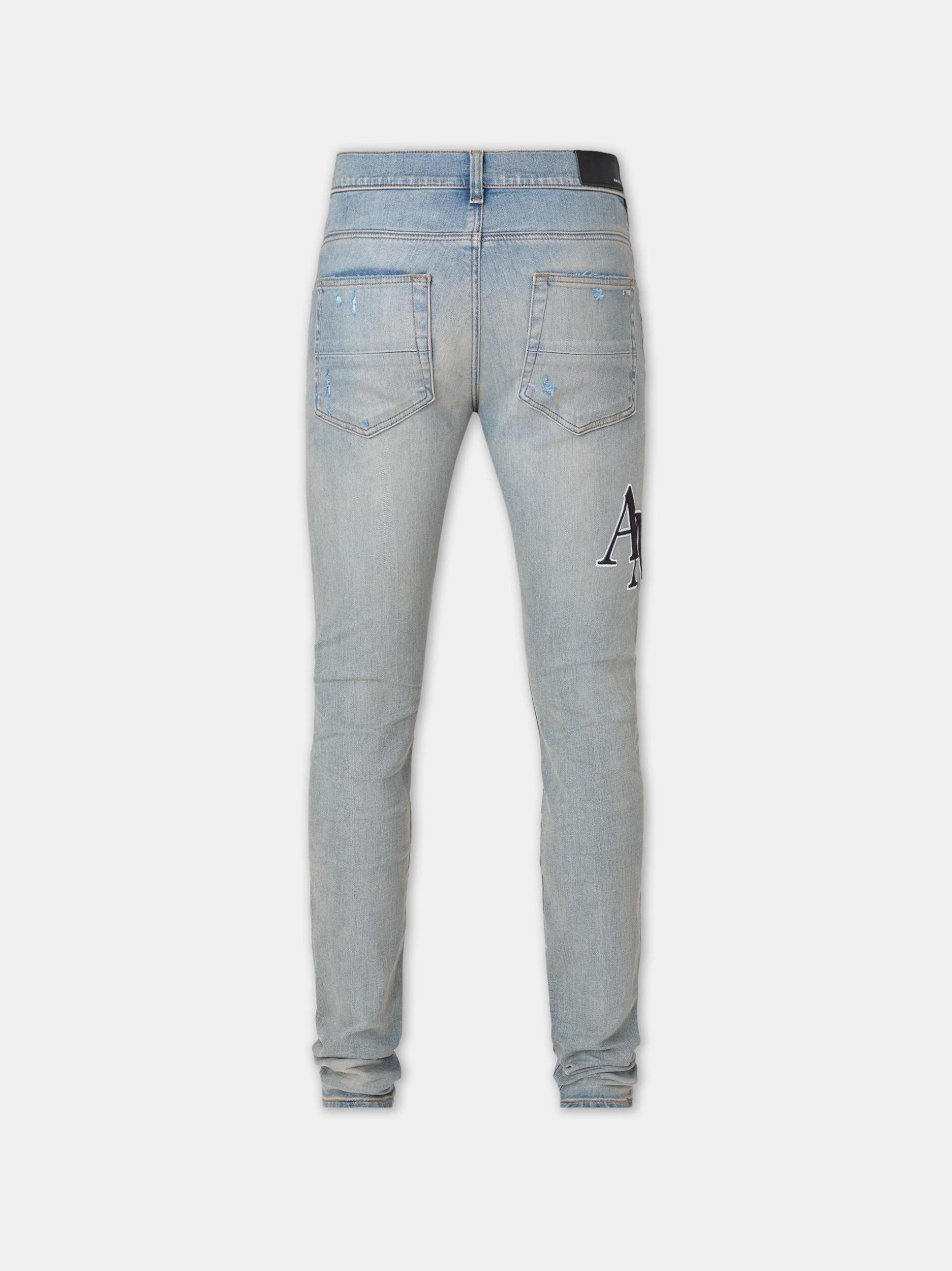 These skinny-fit jeans are artfully washed and abraded in the spirit of well-worn vintage denim. Adorned with the season's staggered AMIRI logo embroidery, these jeans made from Italian stretch denim are finished with classic five-pocket construction. Pre-Spring 2024 Collection MADE IN USA DRY CLEAN ONLY