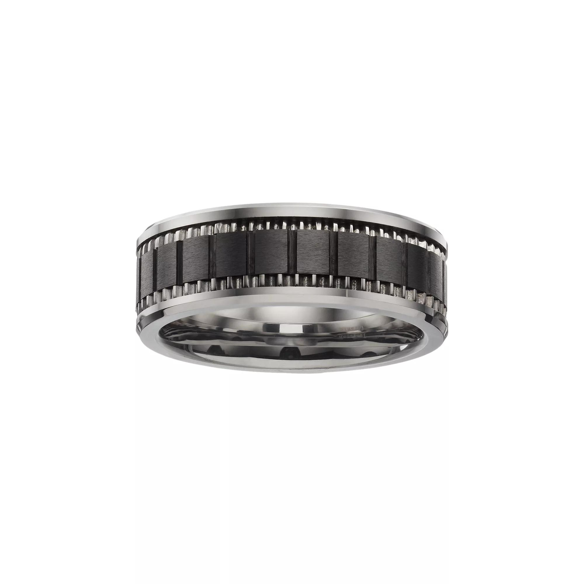 Masculine style is effortless with this mens black ceramic brick and stainless steel band.RING DETAILS Width: 6 mm Metal: stainless steel Size: 10. Gender: male. Age Group: adult.