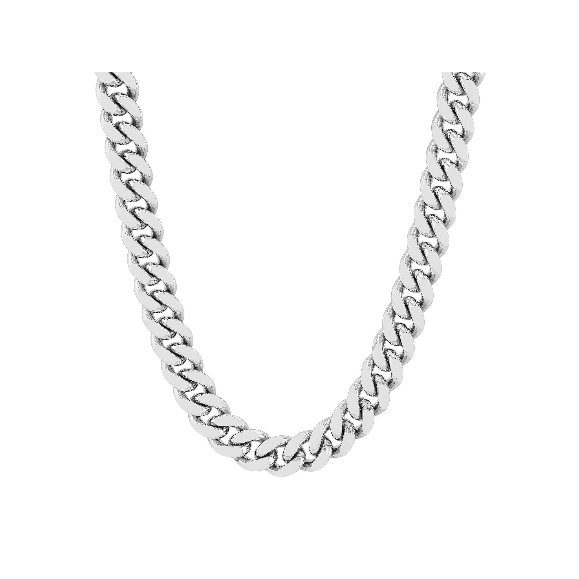Add something new to your daily look with this stainless steel curb link chain necklace. Add something new to your daily look with this stainless steel curb link chain necklace. Chain length: 24 in. Chain type: curb Metal: stainless steel Finish: polished, satin Packaging: velvety pouch Please note, due to the high value of this item, a signature may be required upon delivery. Size: 24". Color: White. Gender: male. Age Group: adult.