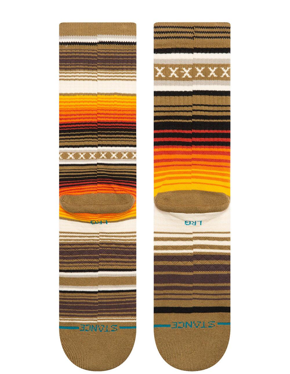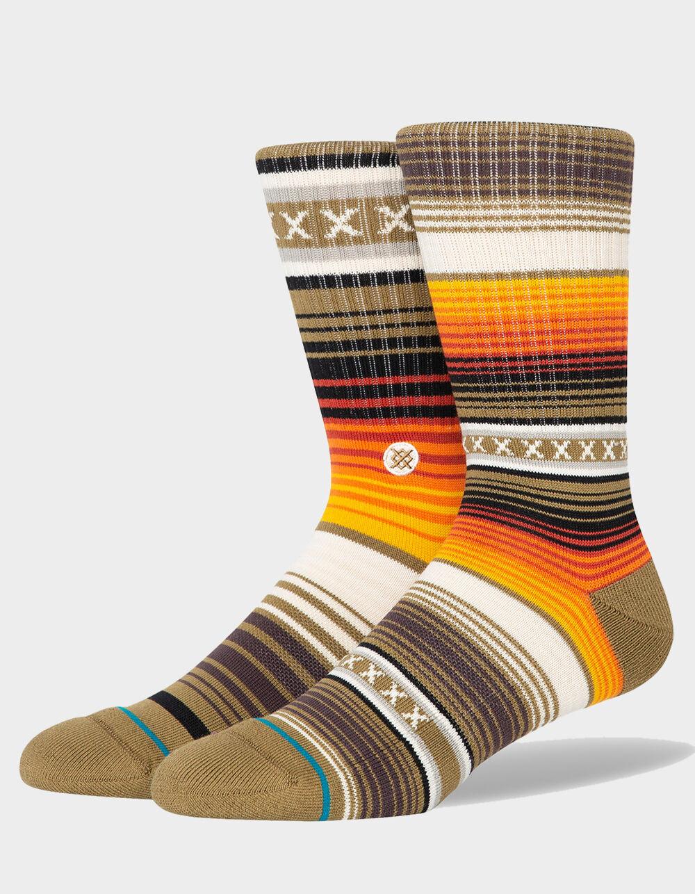 Stance Curren Crew Socks. An eclectic take on a fair isle print, these crews are made with a combed cotton blend that breathes easy. Classic sock height that hits the mid-point of your lower leg. Classic combed cotton blend delivers premium all-day breathability in a variety of versatile constructions. Moderate cushioning throughout the sock for a secure fit with enhanced impact protection. Targeted Cushioning for added comfort where you need it most. Arch support. Seamless toe closure. 77% Combed Cotton, 19% Polyester, 2% Nylon, 2% Elastane. Machine wash. Imported.