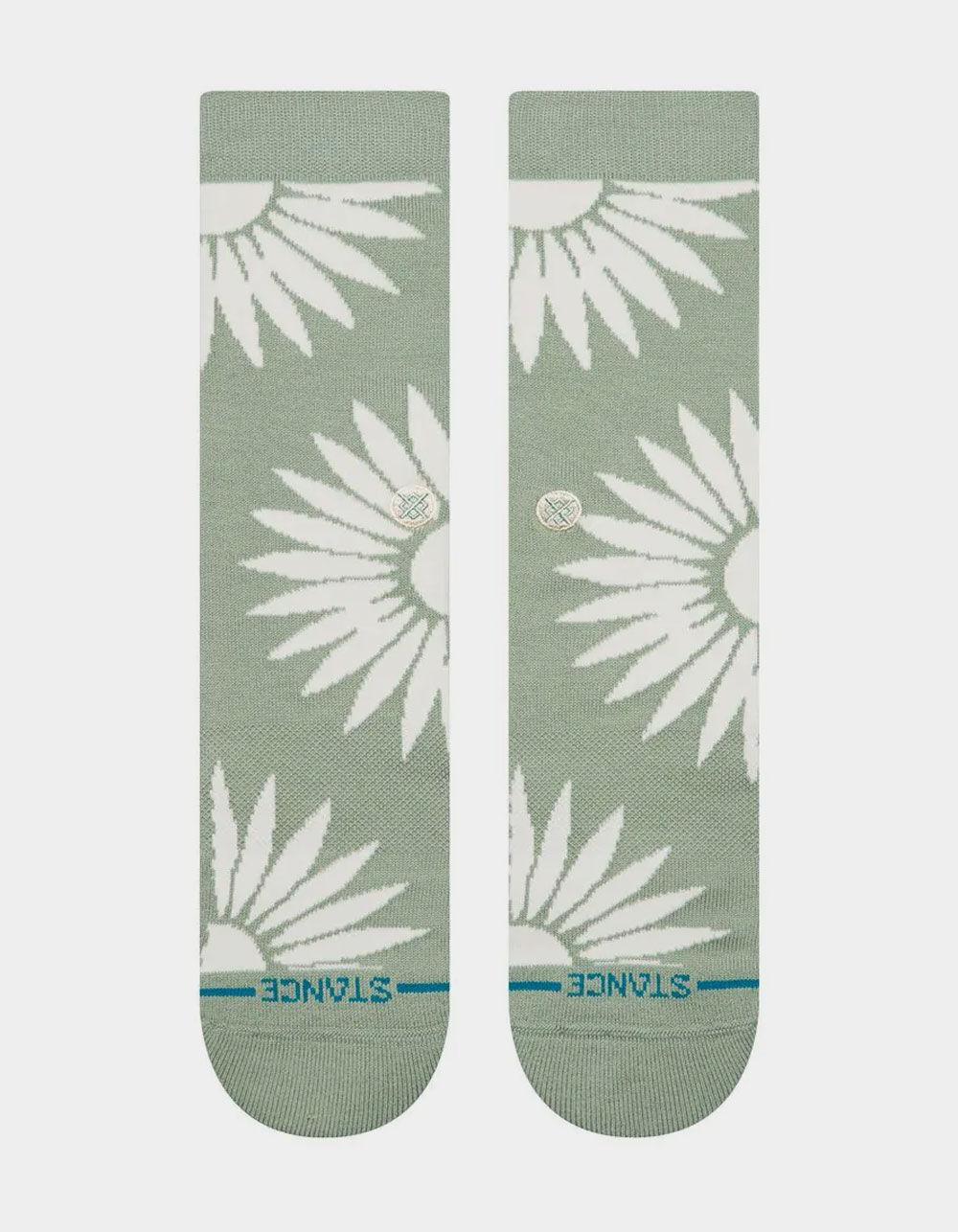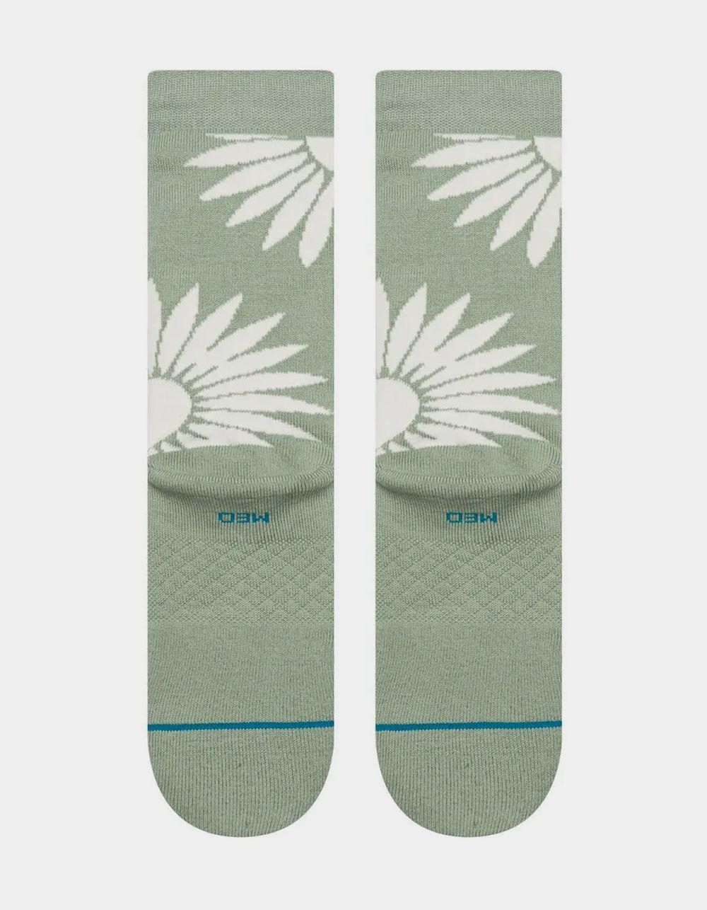 Stance Radial Burst Crew Socks. Stance's fan-favorite crew height patterns are designed with extra comfort in every step, featuring a seamless toe cap, targeted cushioning and stay-put fit. A classic crew height that hits the mid-point of your lower leg. Moderate cushioning throughout the sock for a secure fit with enhanced impact protection. Deep Heel Pockets complement your arch with that feel-good fit. Engineered arch support stabilizes your swing in style. Targeted cushioning for added comfort where you need it most. Seamless toe closure. 54% Combed Cotton 24% Polyester 19% Nylon 3% Elastane. Machine wash. Imported. Sizes:M: 6-8.5L: 9-13
