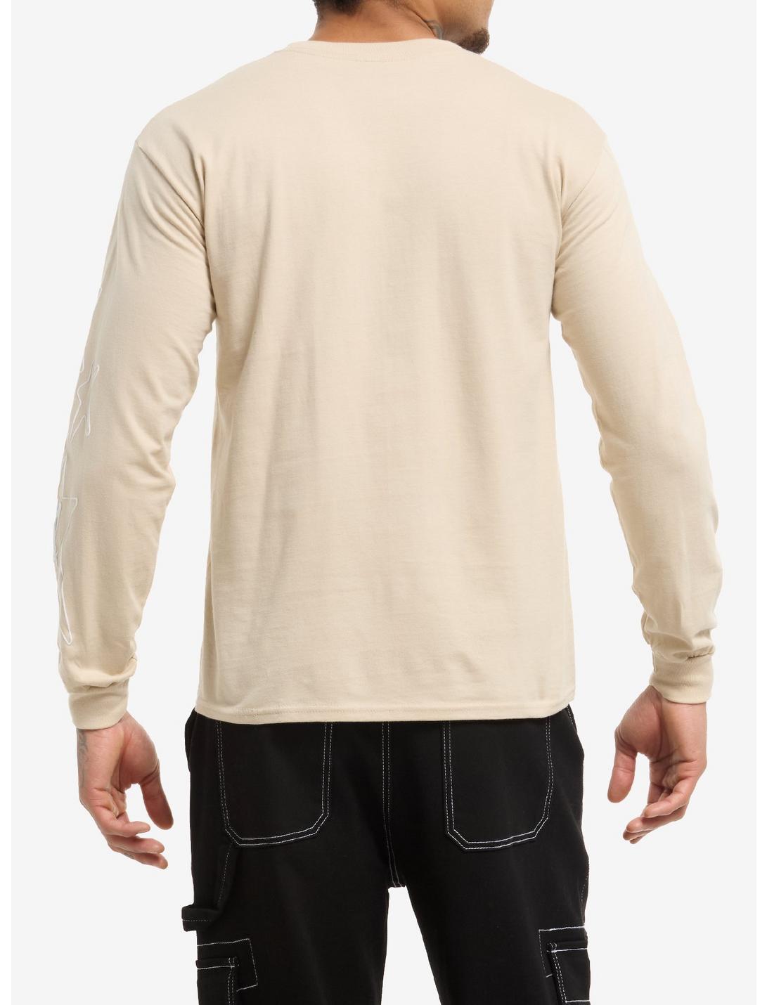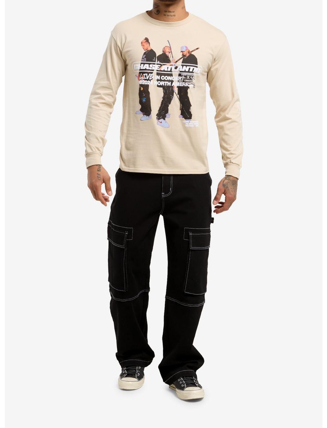 Grab your Chase Atlantic tour merch here, instead of waiting in line at the show! This beige long-sleeve shows the band members holding Japanese swords, with 2024 tour verbiage overlaid and warped stars in puff paint down the left sleeve.100% cottonWash cold; dry lowImportedListed in men's/unisex sizesModel wears size Medium