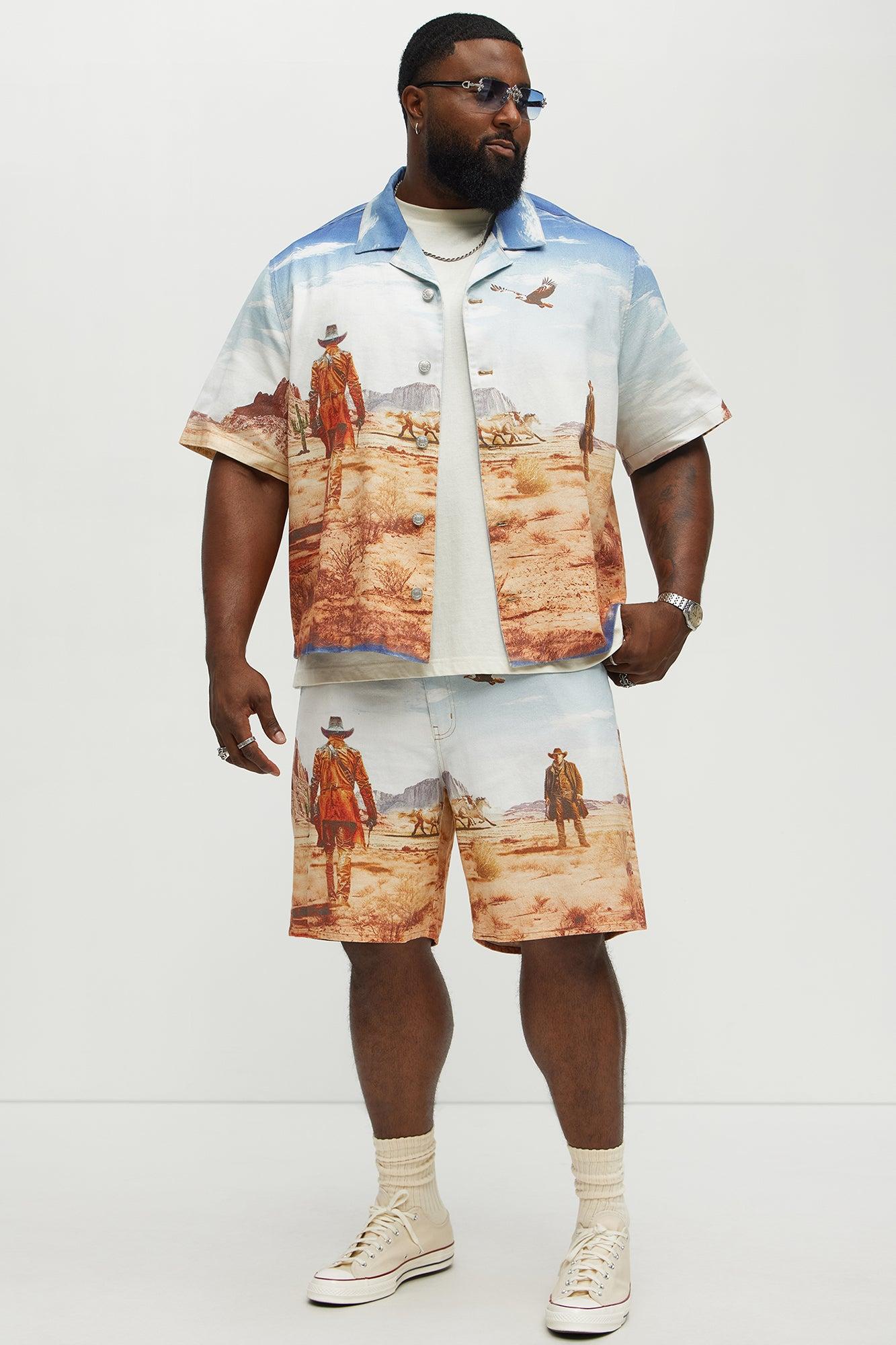 Available In Multi Color. All Over Western Print Relaxed Fit Zip Fly Button Closure 5 Pocket Detail Pair With "Stand Off Short Sleeve Button Up Shirt" 100% Cotton Disclaimer: Due To The Printing Process A Difference In Saturation May Occur. Each Garment Is Unique. Print Placement Will Vary. Imported California Proposition 65WARNING: Cancer and Reproductive Harm - www.P65Warnings.ca.gov.