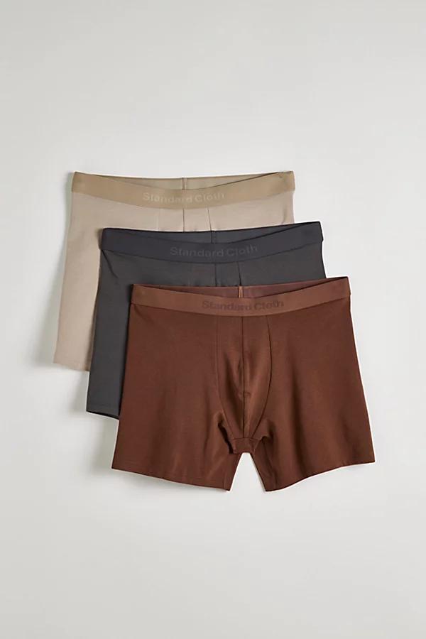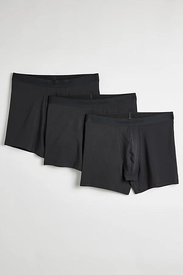 Stretch cotton boxer briefs by Standard Cloth. Essential boxers in smooth comfort cotton with a stretch elastic waistband. Features Standard Cloth cotton boxer brief 3-pack Stretch cotton boxers Classic fit 5 inseam Elastic waistband Content + Care Includes 3 pairs 95% Cotton, 5% spandex Machine wash Imported Size + Fit Inseam: 5 Standard Cloth Cotton Boxer Brief 3-Pack in Black, Mens at Urban Outfitters