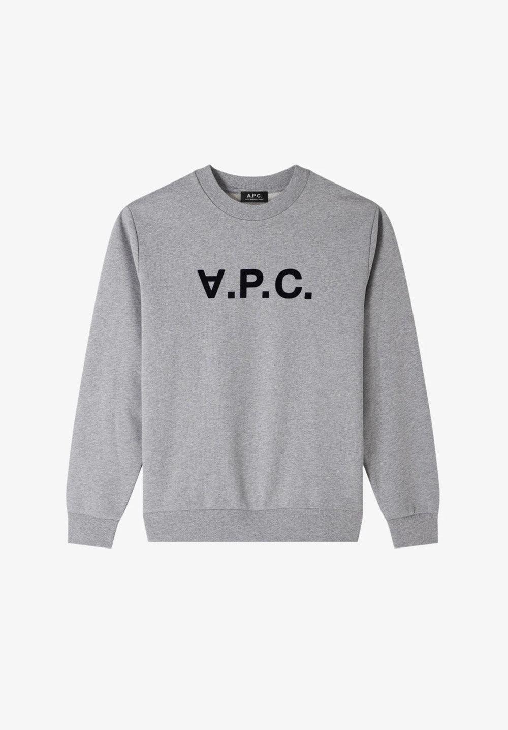 A.P.C. sweatshirt.- Unisex model.- Straight cut.- Crew neck.- Velvety flocked blue V.P.C. logo.- This garment is GOTS certified, which guarantees that it contains a minimum of 95% certified organic fibers and complies with strict social and environmental criteria throughout the production chain.