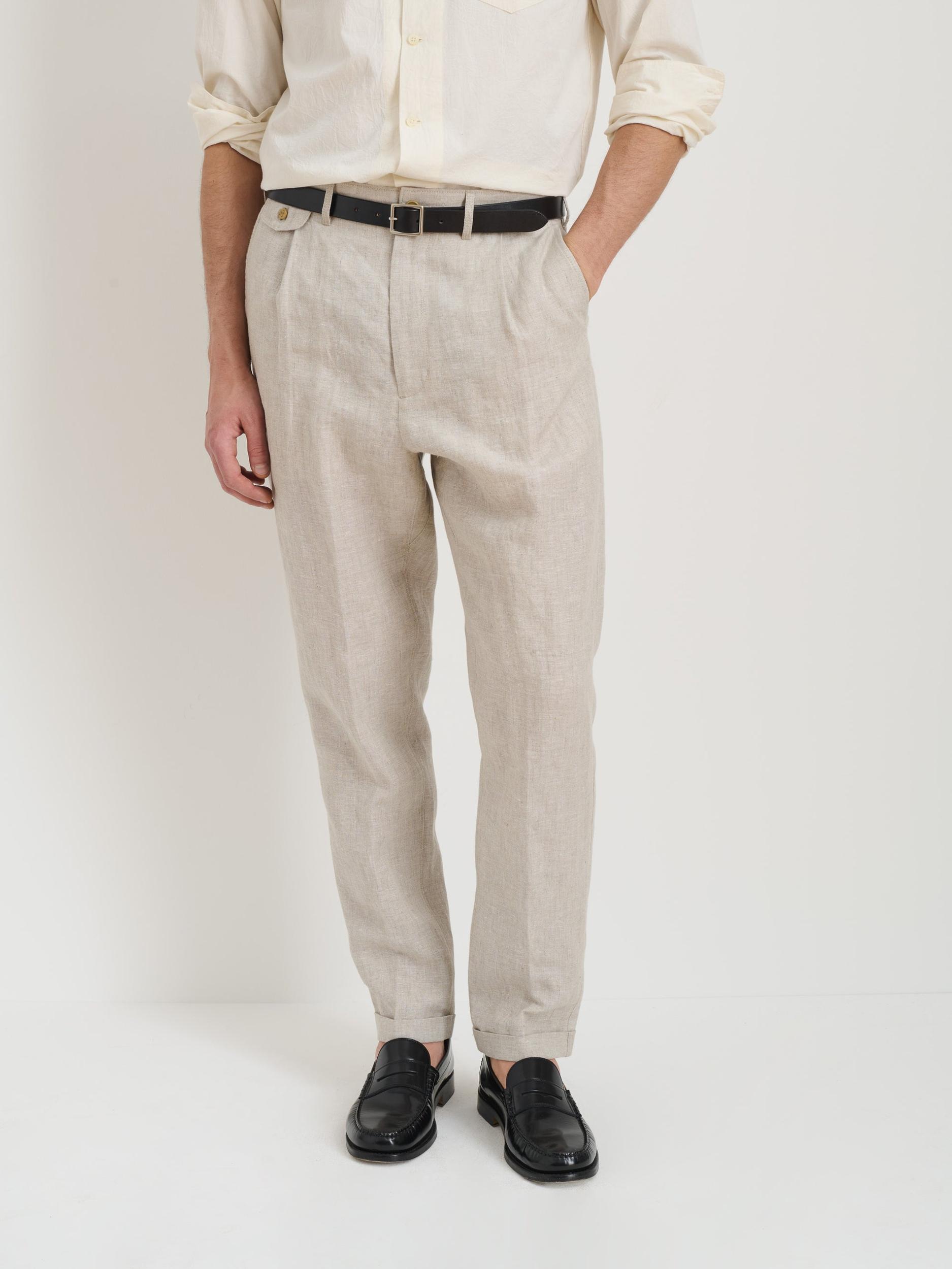 The perfect summer pant doesn’t exi— Design notes: “A linen take on our best-selling Standard Pleat Pant. It’s a customer (and AM team) favorite.” - Jordan, Men’s Designer Fits true to size. Ante is 6'1" and wearing a size 28 Size 28 measures 34" around the waist and 44" around the hip. Inseam measures 30", front rise