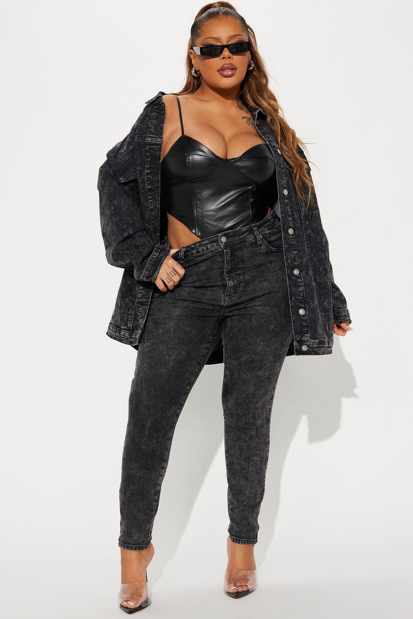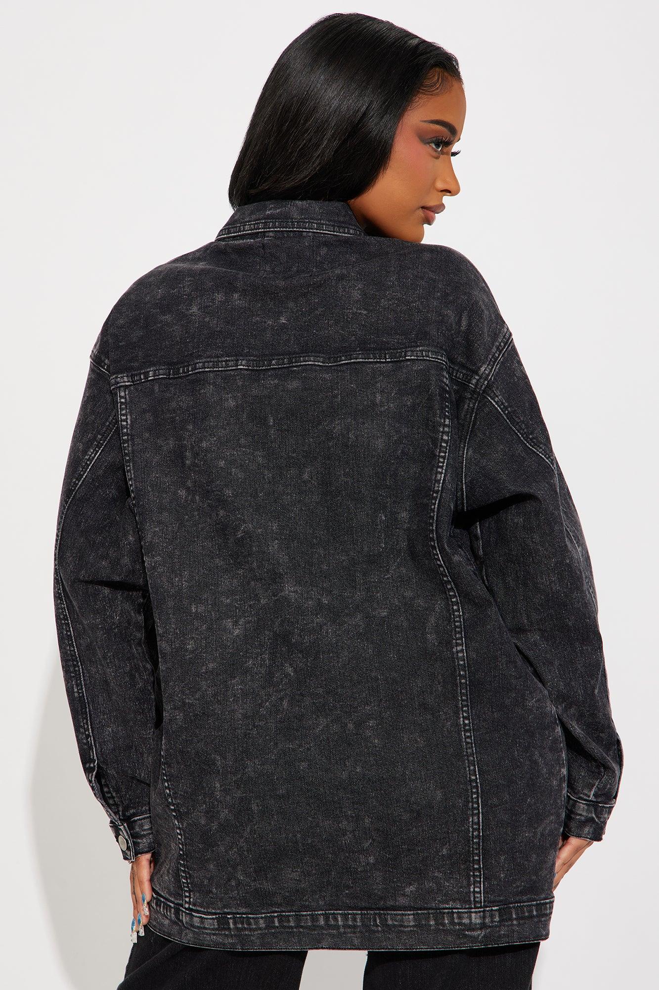 Available In Black Wash. Pair With Standing On Business Skinny Jeans Denim Trucker Jacket Collared Button Closure Pockets Acid Wash High Stretch Disclaimer: Due To The Specialized Wash Process, Each Garment Is Unique. 65% Cotton 33% Polyester 2% Spandex Imported California Proposition 65WARNING: Cancer and Reproductive Harm - www.P65Warnings.ca.gov.