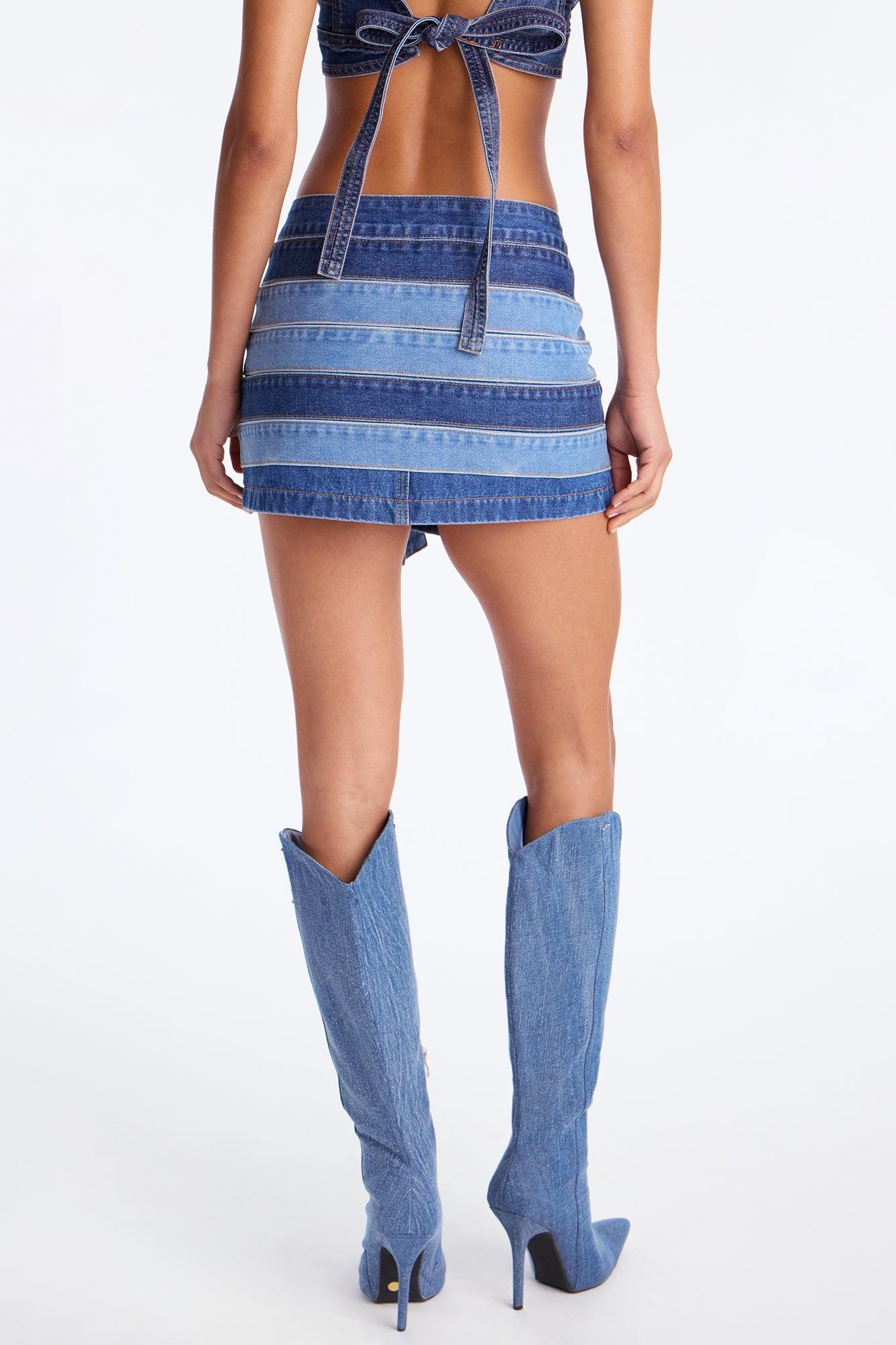 Available In Medium Wash. Micro Mini Skirt Button Closure Denim Rigid Non Stretch 10.5" Length Disclaimer: Due To The Specialized Wash Process, Each Garment Is Unique. 70% Cotton 19% Viscose 11% Polyester Imported California Proposition 65WARNING: Cancer and Reproductive Harm - www.P65Warnings.ca.gov.