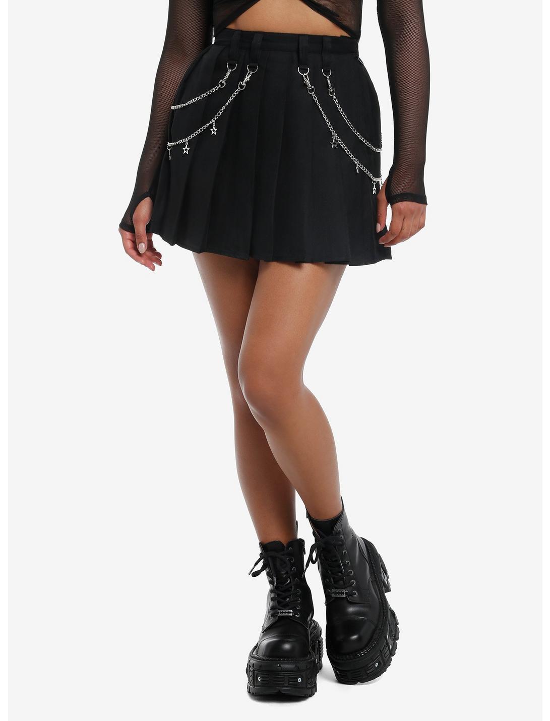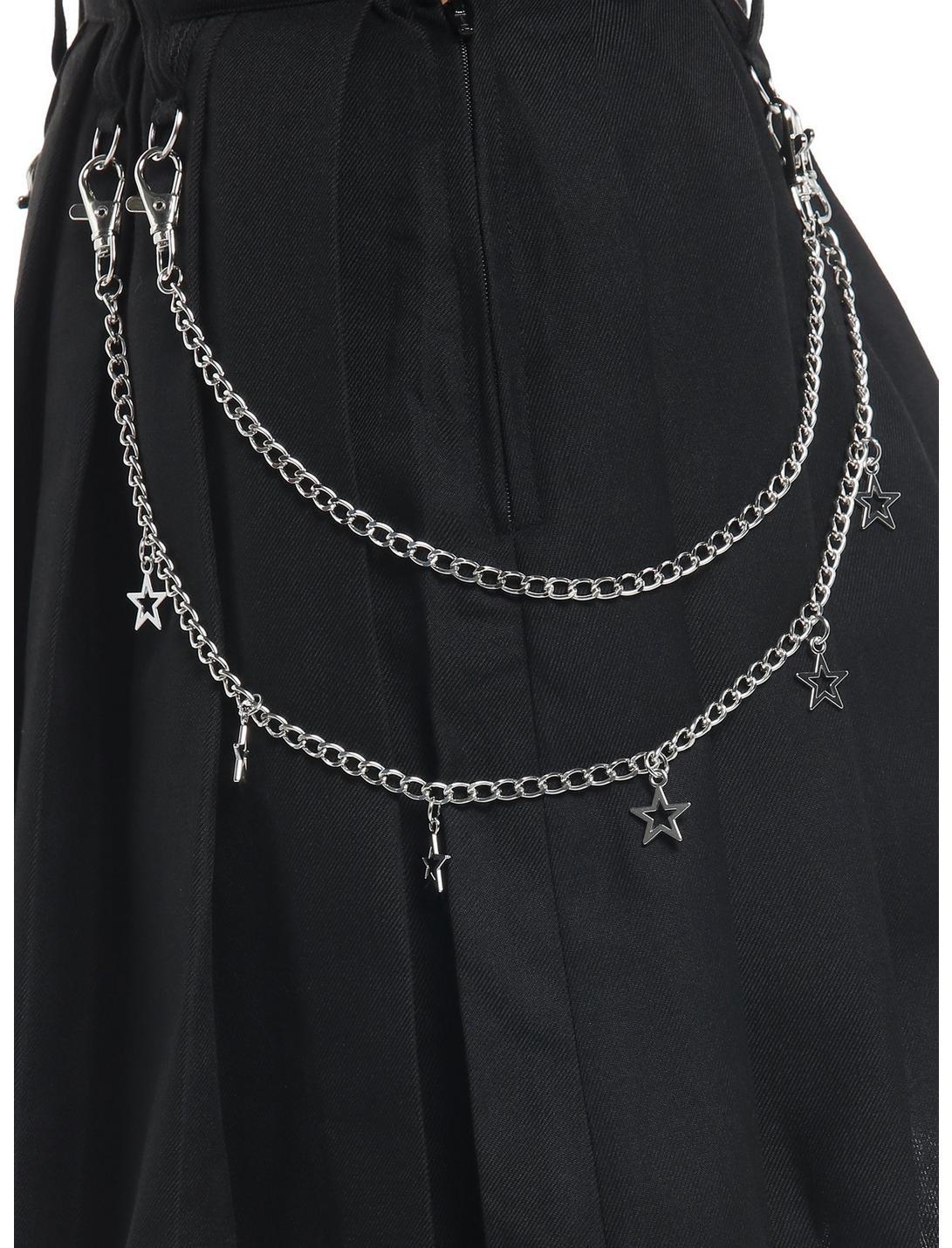 Make sure to add some star power to your look with this pleated skirt! It features D-ring hardware around the yoke and a removable star chain.Please note: Style is fitted with no stretch; size up for a looser fit80% polyester; 20% rayonWash cold; dry lowLength: 15"Non stretchRemovable chainListed in junior sizesModel is 5'10"Model wears size Small