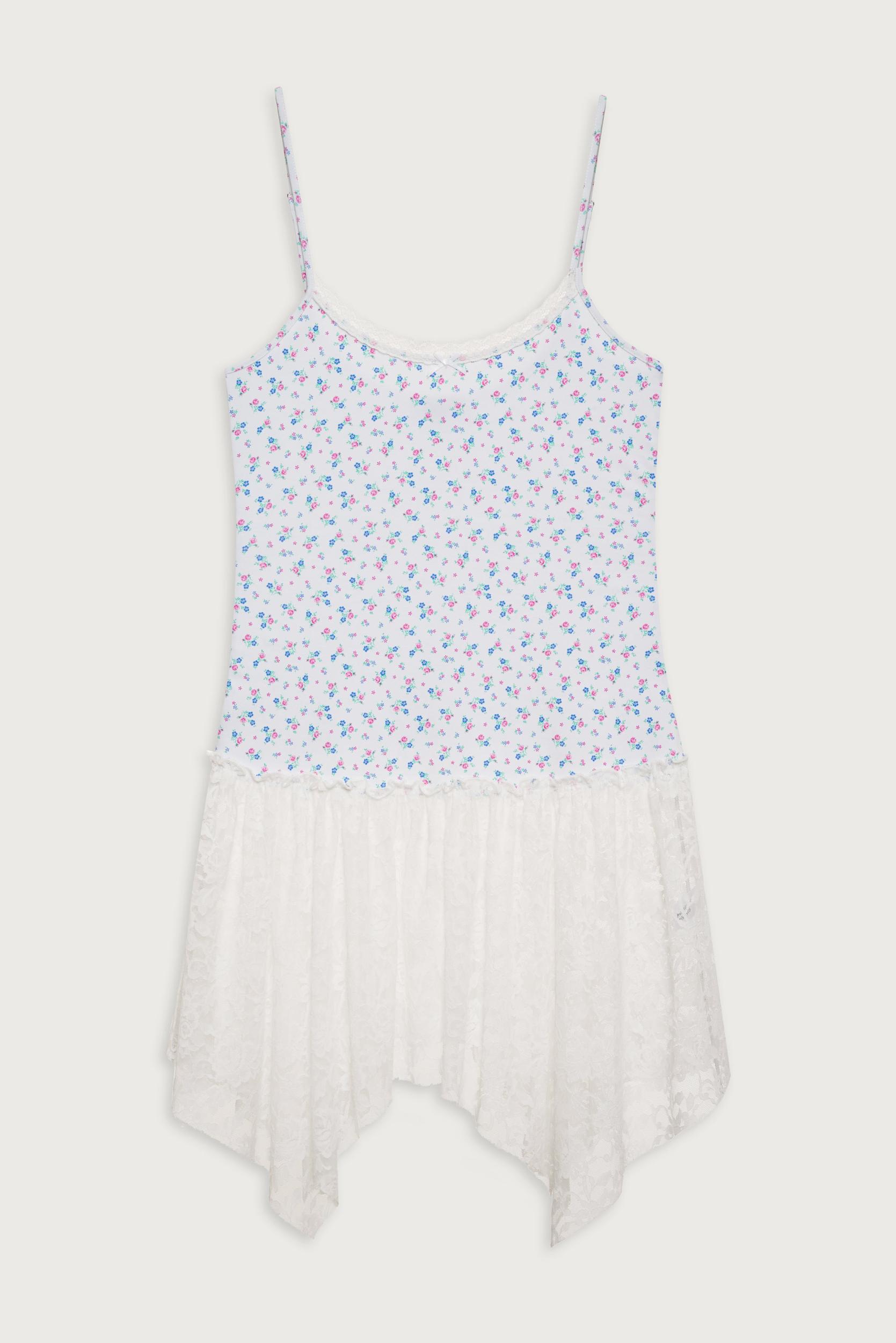 A new staple mini dress. Star Crossed is designed with an ultra-soft cotton bodice, sheer lace skirt, dainty bow detail, and adjustable shoulder straps. Wear this mini dress for your next night out or as a cover-up over your favorite swim set. Fabric 90% Cotton + 10% Spandex Jersey Model Size & Fit This style runs true to size Taylor is wearing a size Small Height 5’8” (173cm) Bust 32” (81.5cm) , Waist 23.5” (59.5cm), Hips 34" (86.5cm)