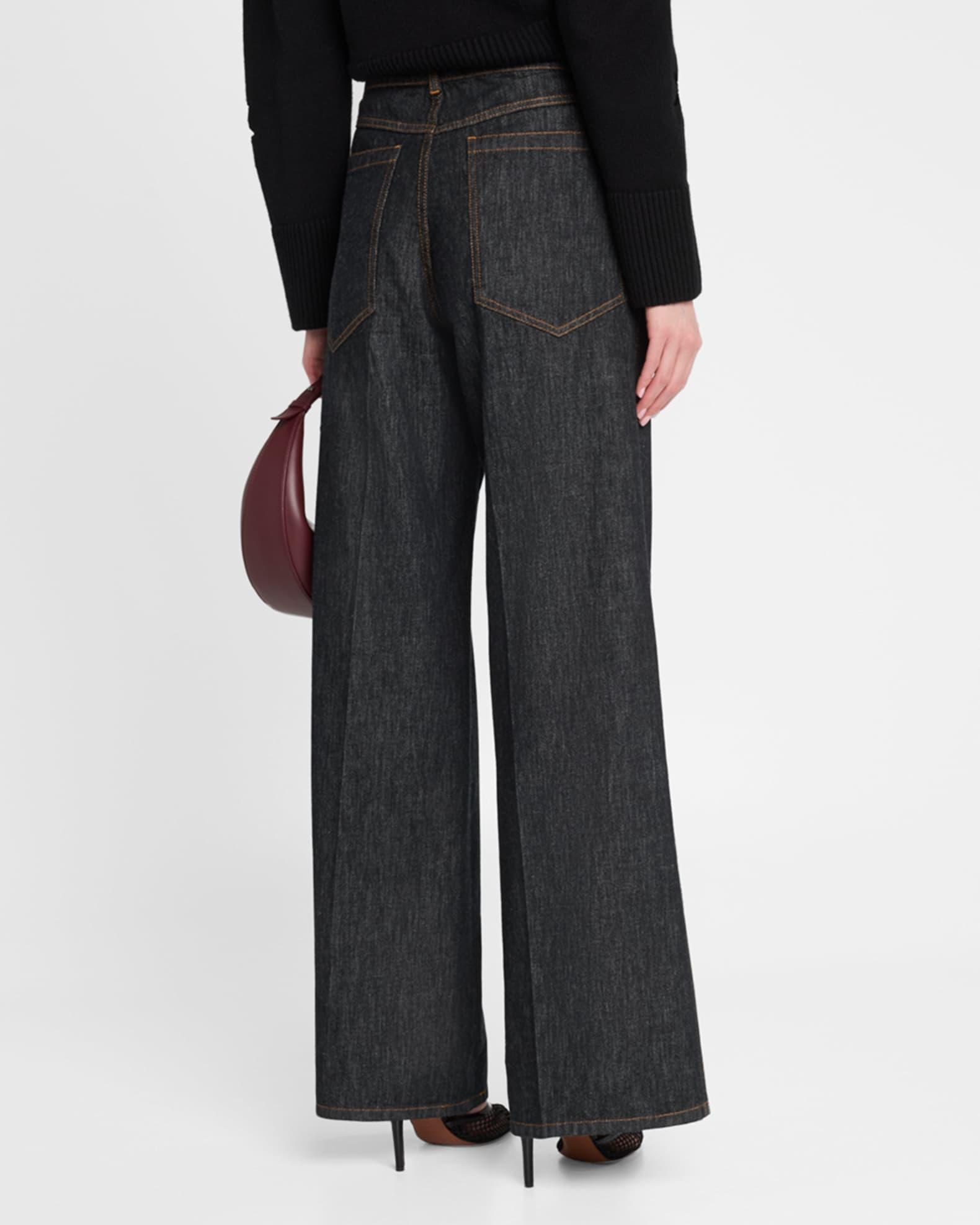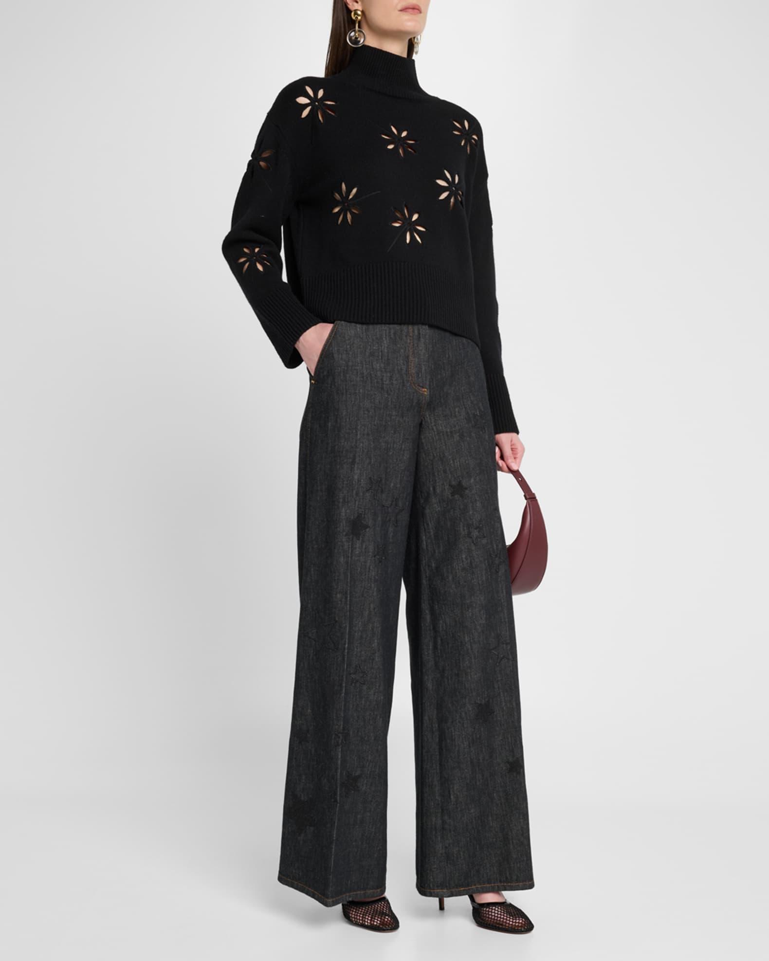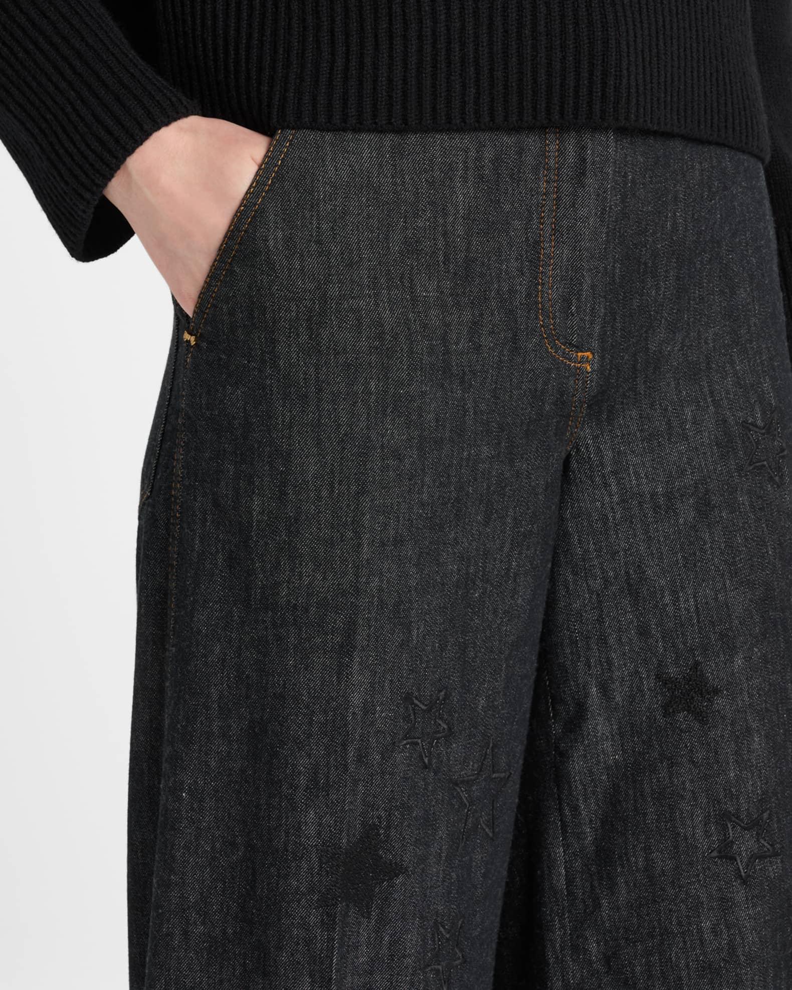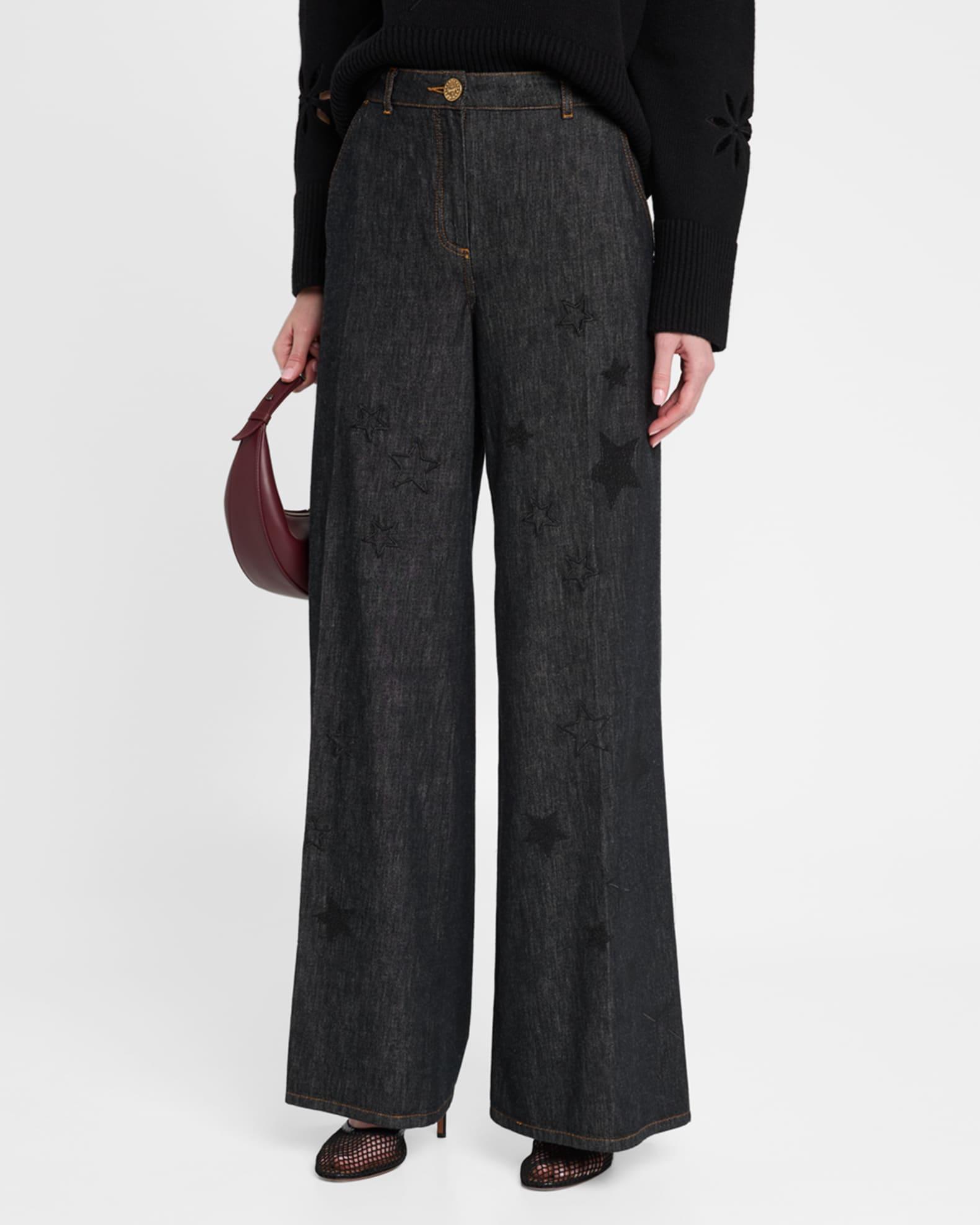 Star Embroidered Denim Wide-Leg Pants