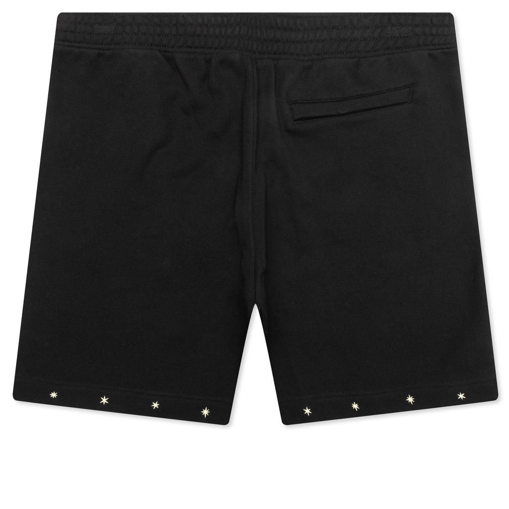 The New Star Print Board Shorts in Black offer a relaxed yet refined style, made from soft cotton with a regular fit. An elasticized waistband with a drawstring ensures comfort, while the screen-printed design at the bottom hem adds a subtle graphic touch. Functional details include side pockets and a back pocket with a button for added convenience. 100% Cotton Regular fit Elasticized waistband Drawstring Screen printed design at bottom hem Side pockets Back pocket with button Style No: BM515J3YN2001