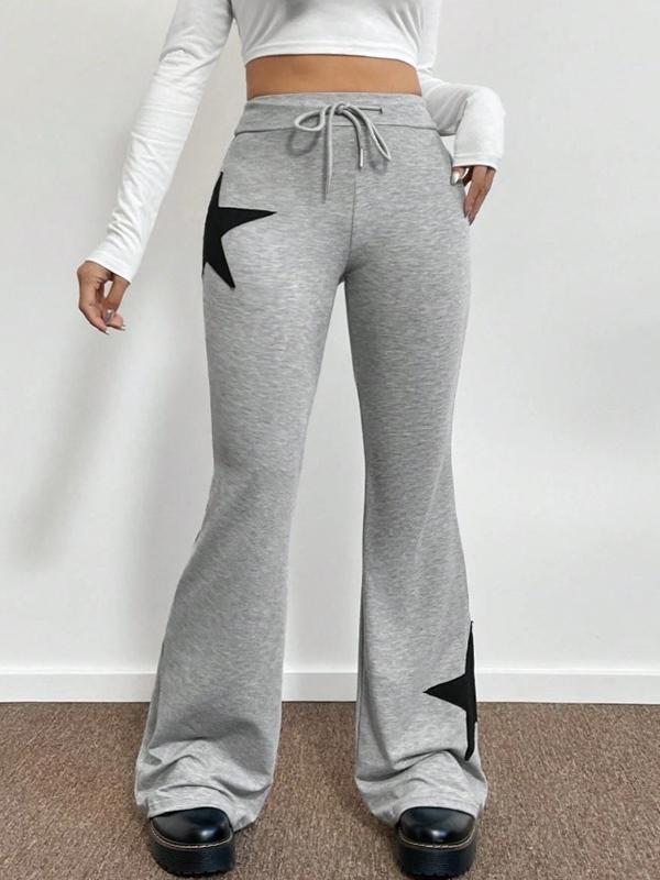 Star Print Highly Elastic High Rise Drawstring Flare Leg Pants