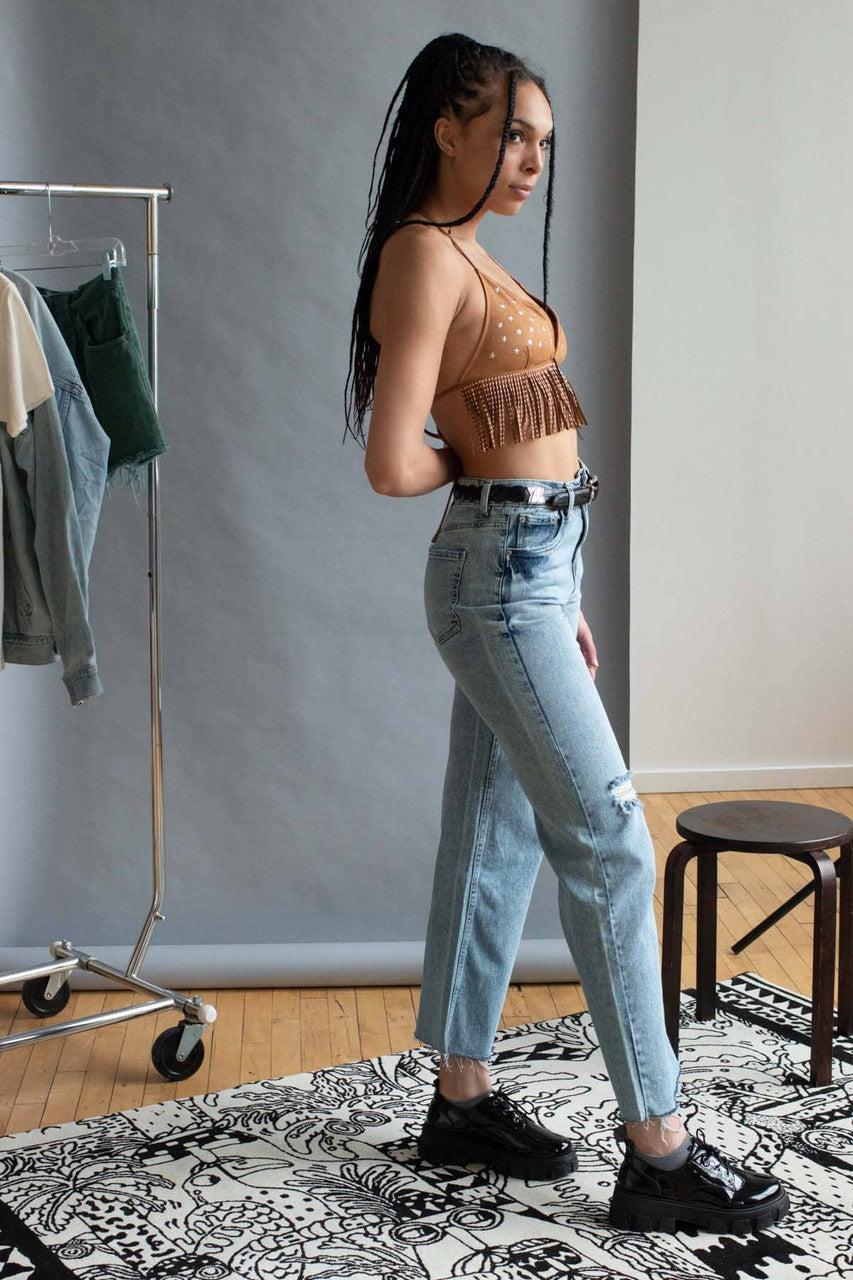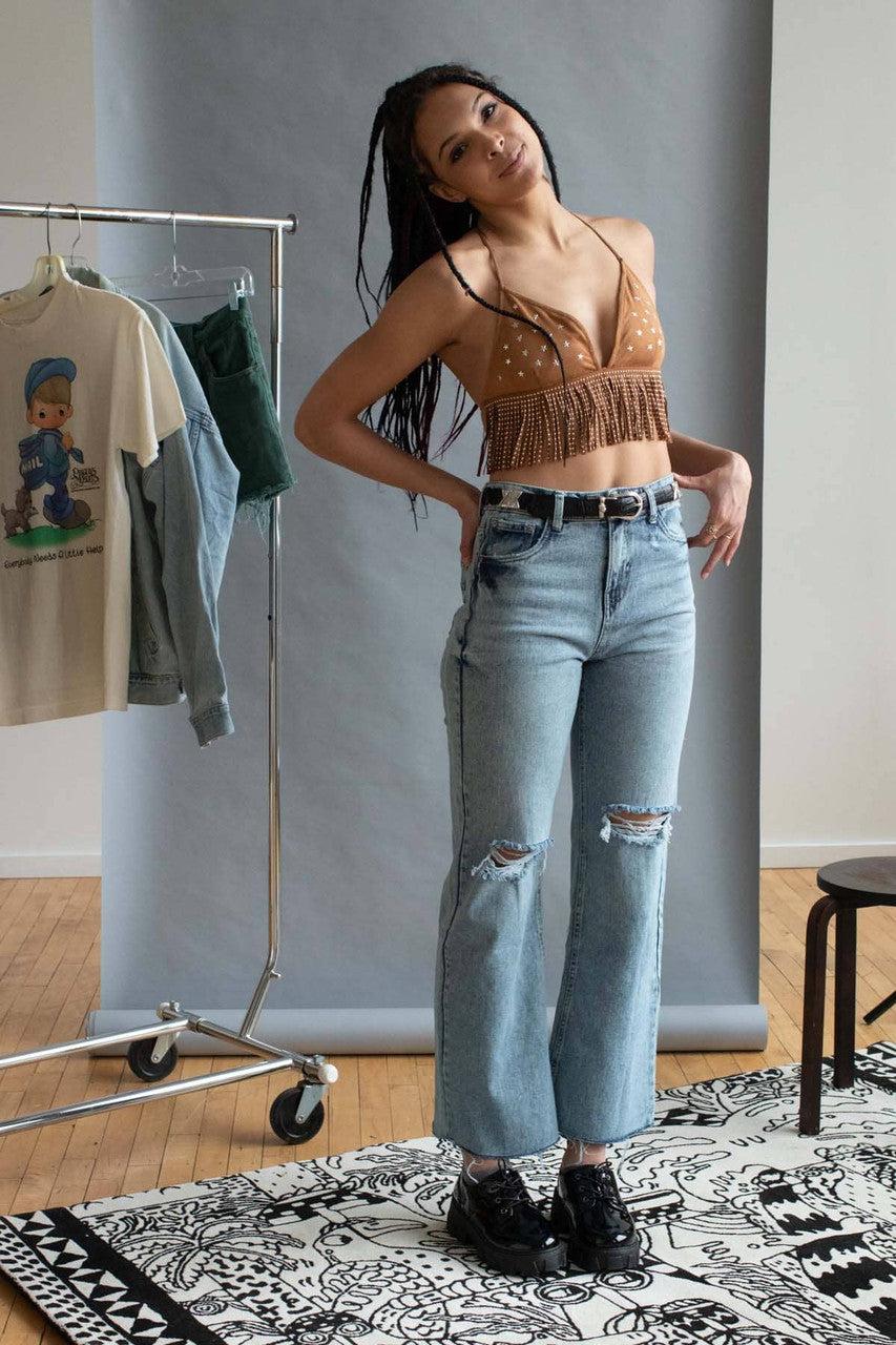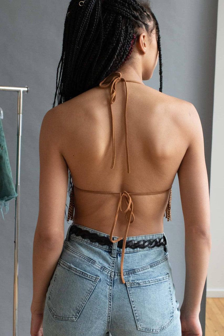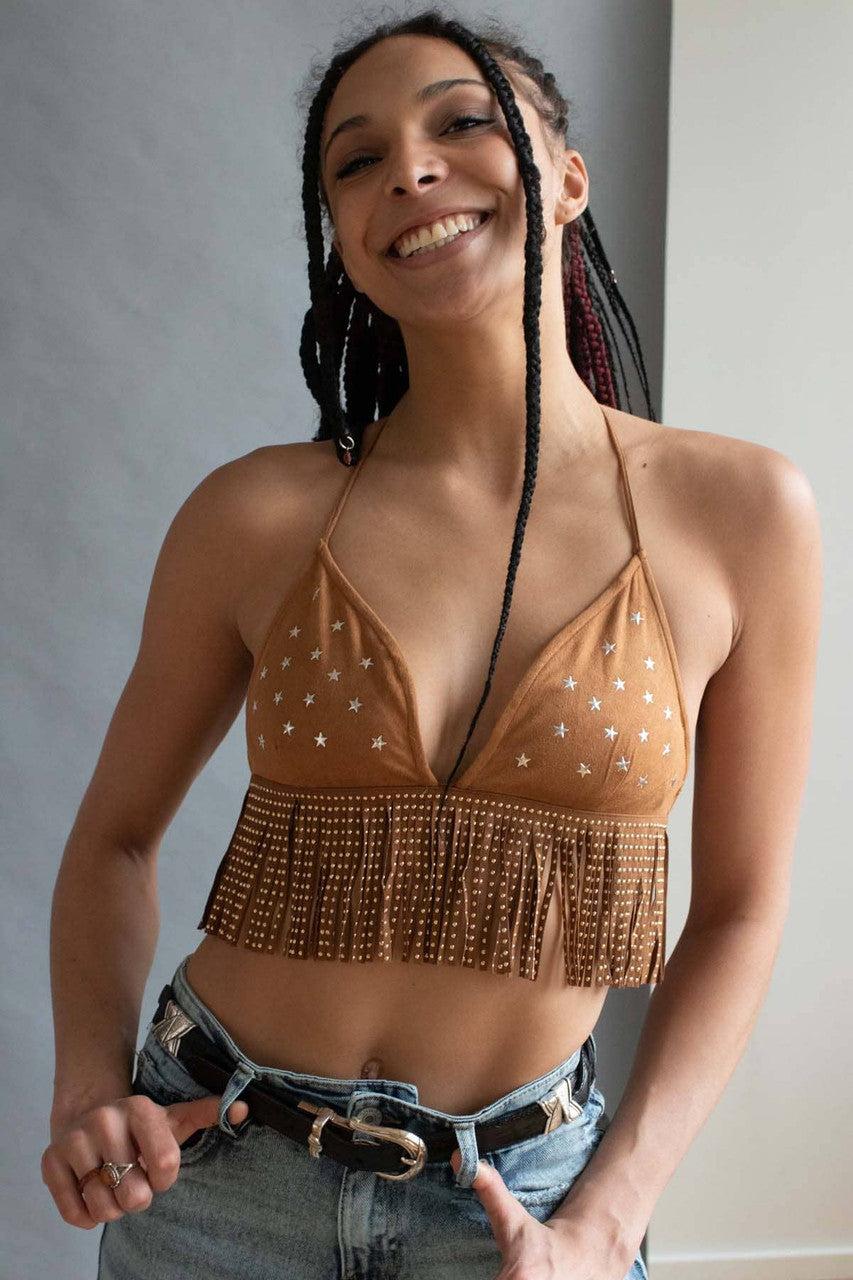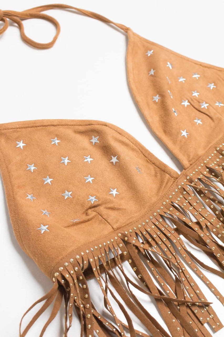 Star Studded Fringe Suede String Bikini Top