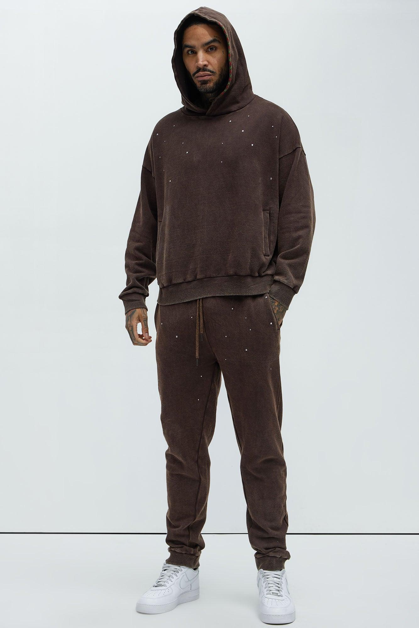 Available In Brown. Elastic Waist Drawstring Side Hand Pockets Studded Detail Pair With "Star Studded Hoodie" 60% Cotton 40% Polyester Disclaimer: Due the To The Specialized Dye Process, each piece is unique. Wash With Other Like Garments Imported