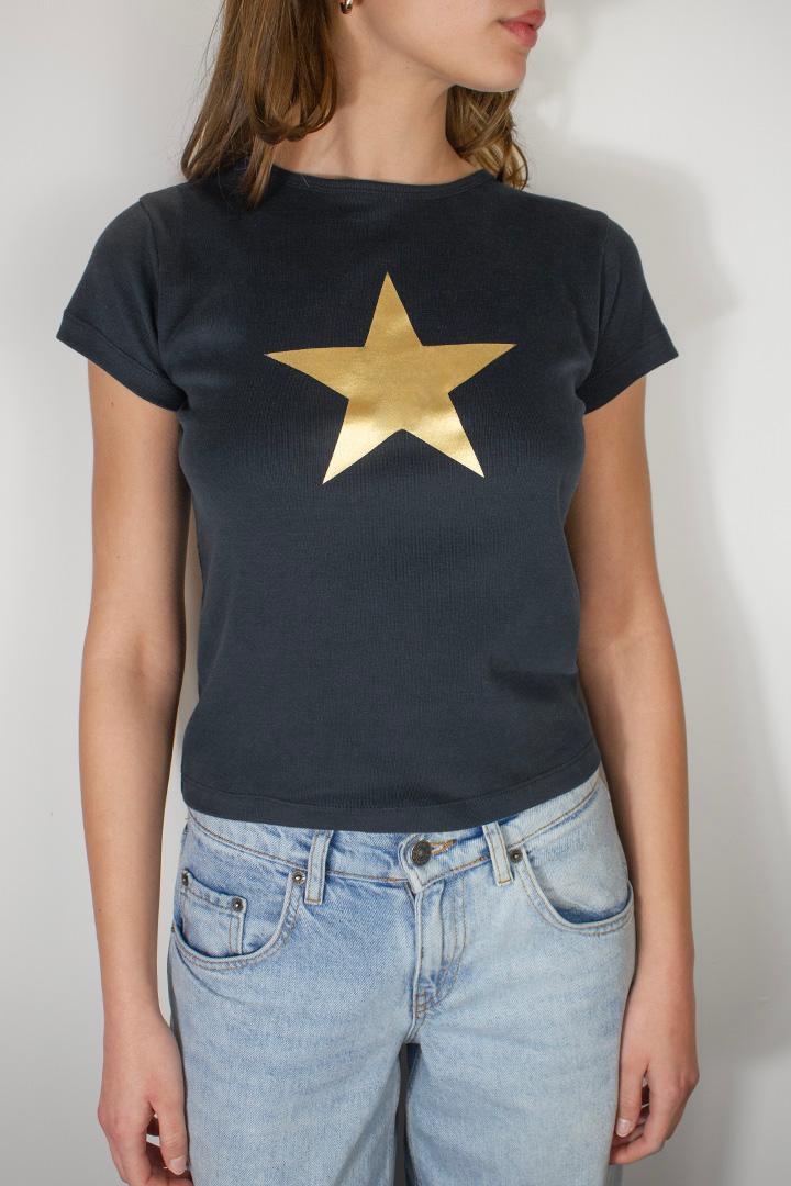 T-shirt with star print, crew neckline, short sleeves, regular length, relaxed fit.