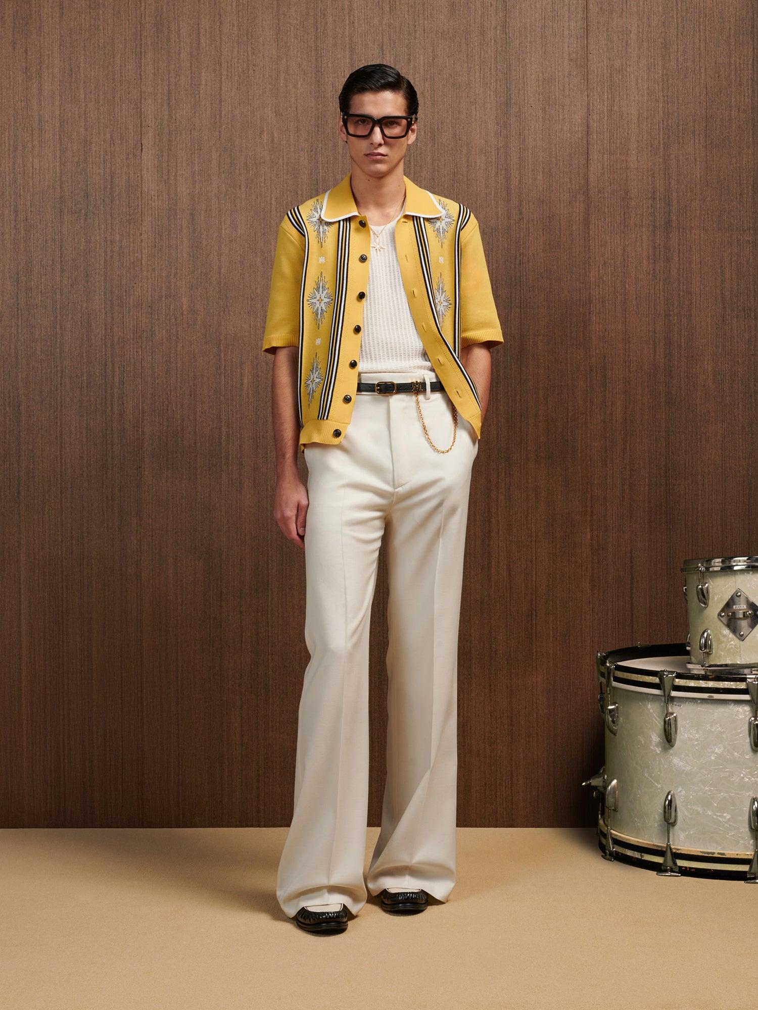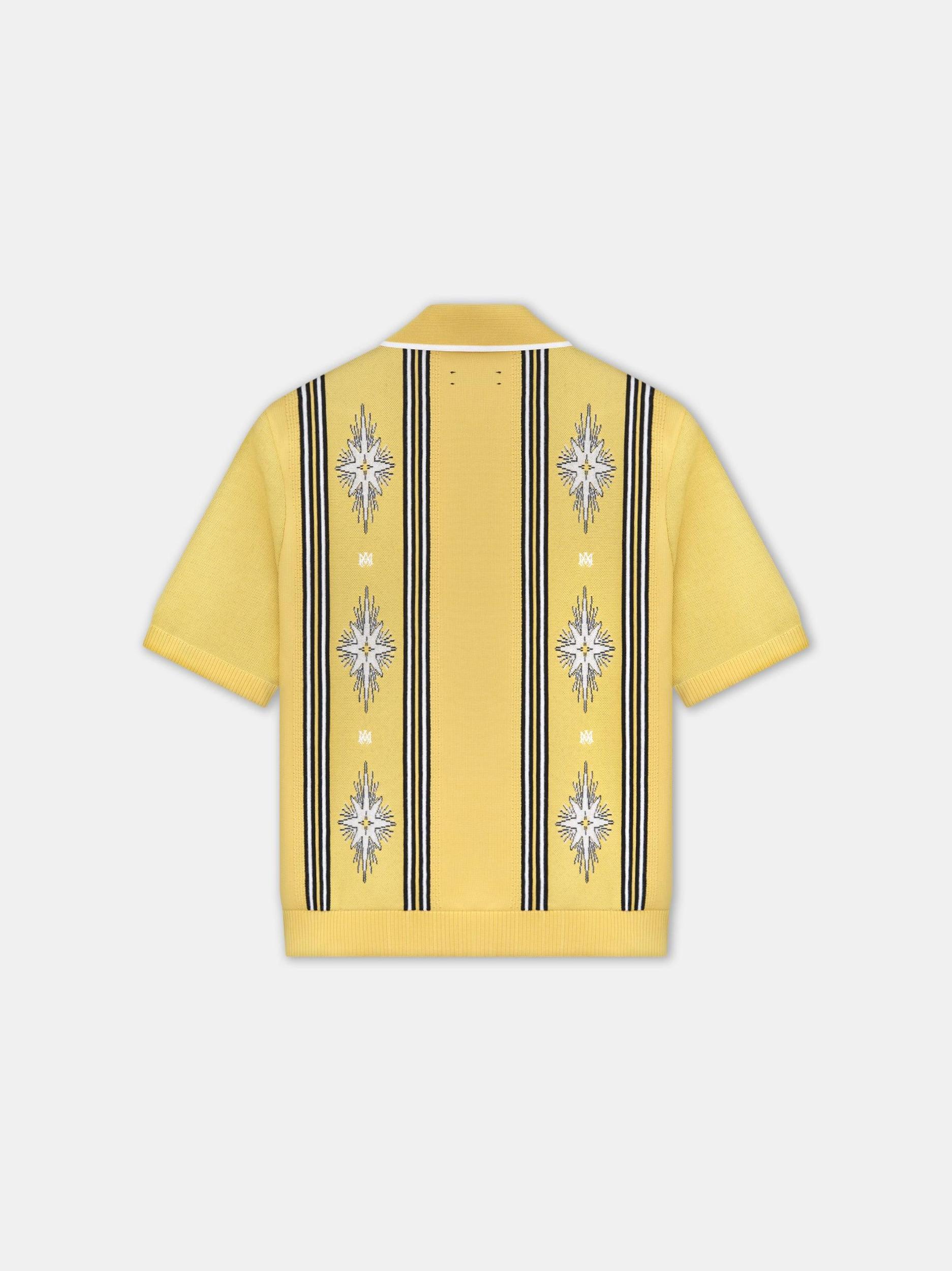 Inspired by Art Deco and mid-century Americana, the starburst motif is a seasonal icon for Spring-Summer 2025. The Starburst Button Down Polo is designed with fine rib finishes and embroidered MA icons. SPRING-SUMMER 2025 COLLECTION MADE IN ITALY 100% POLYAMIDE THIS GARMENT HAS UNDERGONE A SPECIAL PROCESS WHICH RESULTS IN INTENTIONAL VARIATIONS OF SHADING AND COLOR, AND ADD TO THE PIECE'S UNIQUE CHARACTERISTICS. THIS MAY LEAD TO BLEEDING OR DYE TRANSFER. PLEASE USE CAUTION WHEN WASHING OR DRY-CLEANING THIS ITEM.