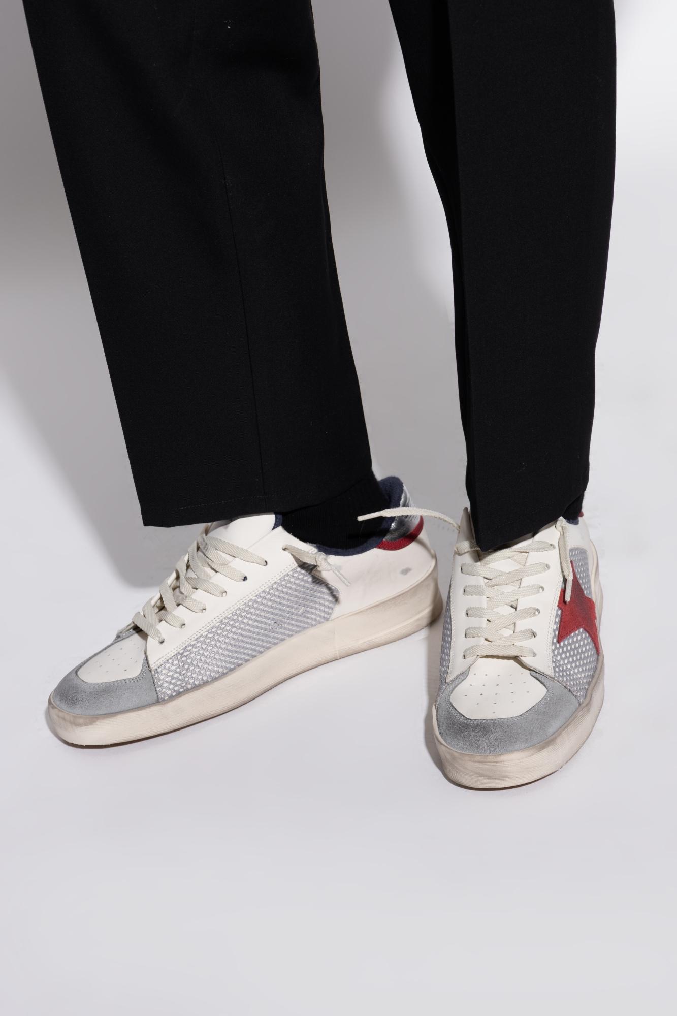 Shop Golden Goose Stardan Leather And Net Upper Suede Toe And Star Laminated Heel Sneakers White In Multi from 800+ stores, starting at $445. "Stardan" sneaker in grey mesh with red suede star Grey mesh upper Red suede star Silver leather heel tab White leather inserts White leather toe White laces Vintage treatment. Colour. : White. Composition. : COW LEATHER 90%; POLYESTER 10%. Country Of Manufacture. : IT. Dimension. : 40mm. MPN. : GMF00667F00755683102. .