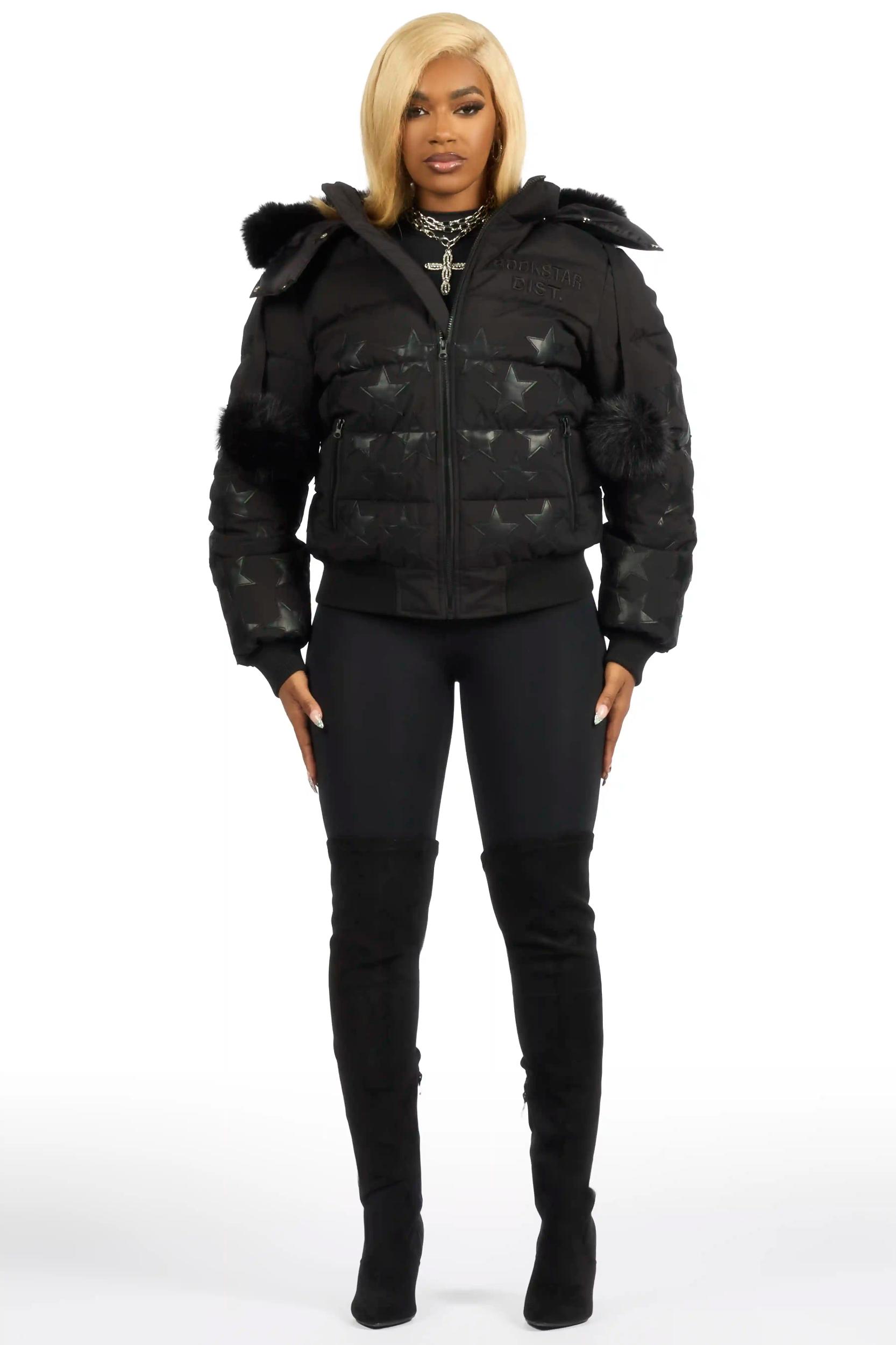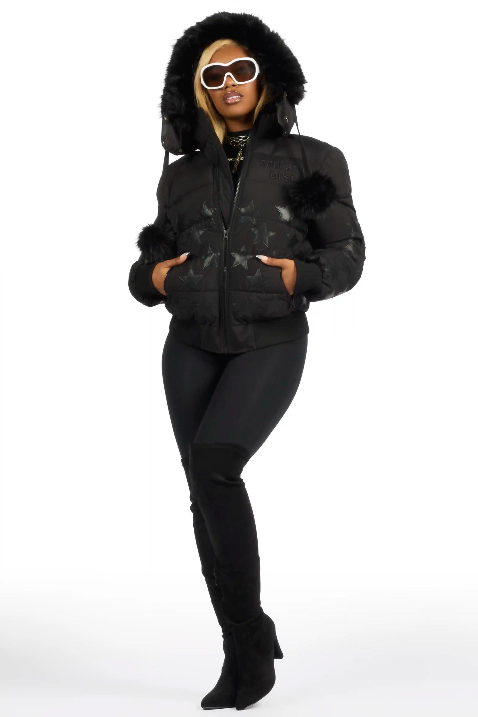 Starlena Black Puffer Jacket With Fur Hood Female