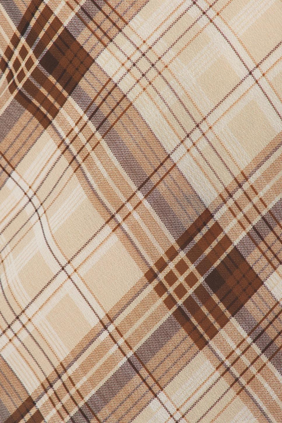 100% polyester. Hand wash cold. Unlined. Halter self-tie closure with hidden back zip closure. Lace trim. Plaid design on midweight crepe fabric. Garment is made with a semi-sheer fabric, undergarments can show through. Made in China. Revolve Style No. LIOR-WD151. Manufacturer Style No. LD1033-1-2503.