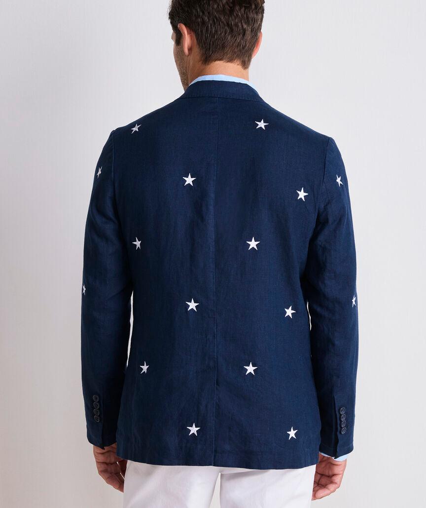 Show your summer spirit in style with our Stars & Stripes Linen Blazer. Covered in embroidered stars and featuring a bold striped sleeve lining, this blazer exudes Americana vibes from every angle. Perfect for Memorial Day, the 4th of July, or any summer celebration, it’s a standout piece that combines festive flair with classic style.