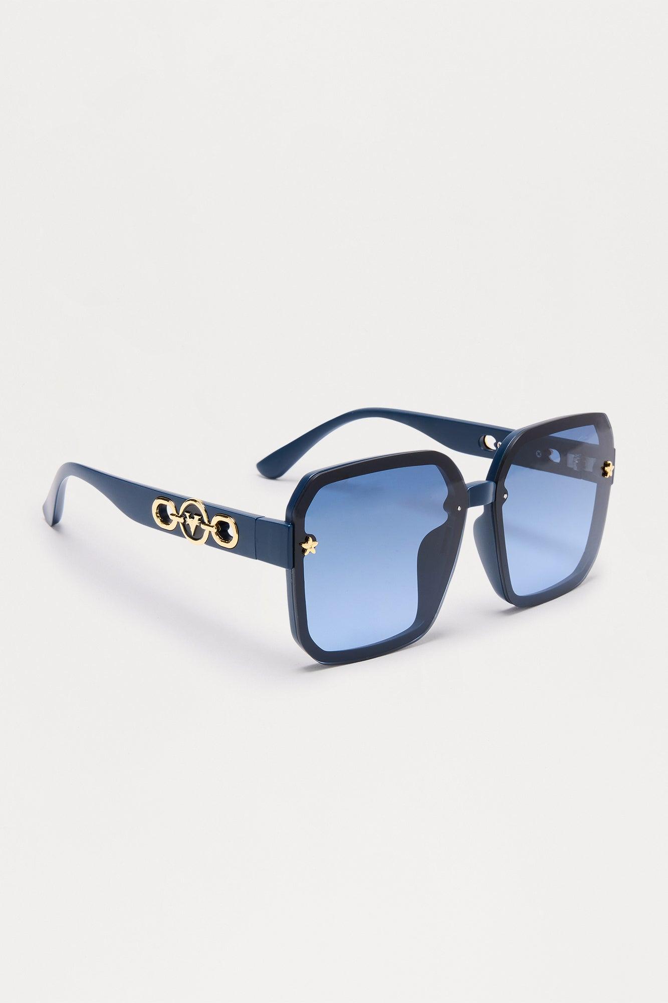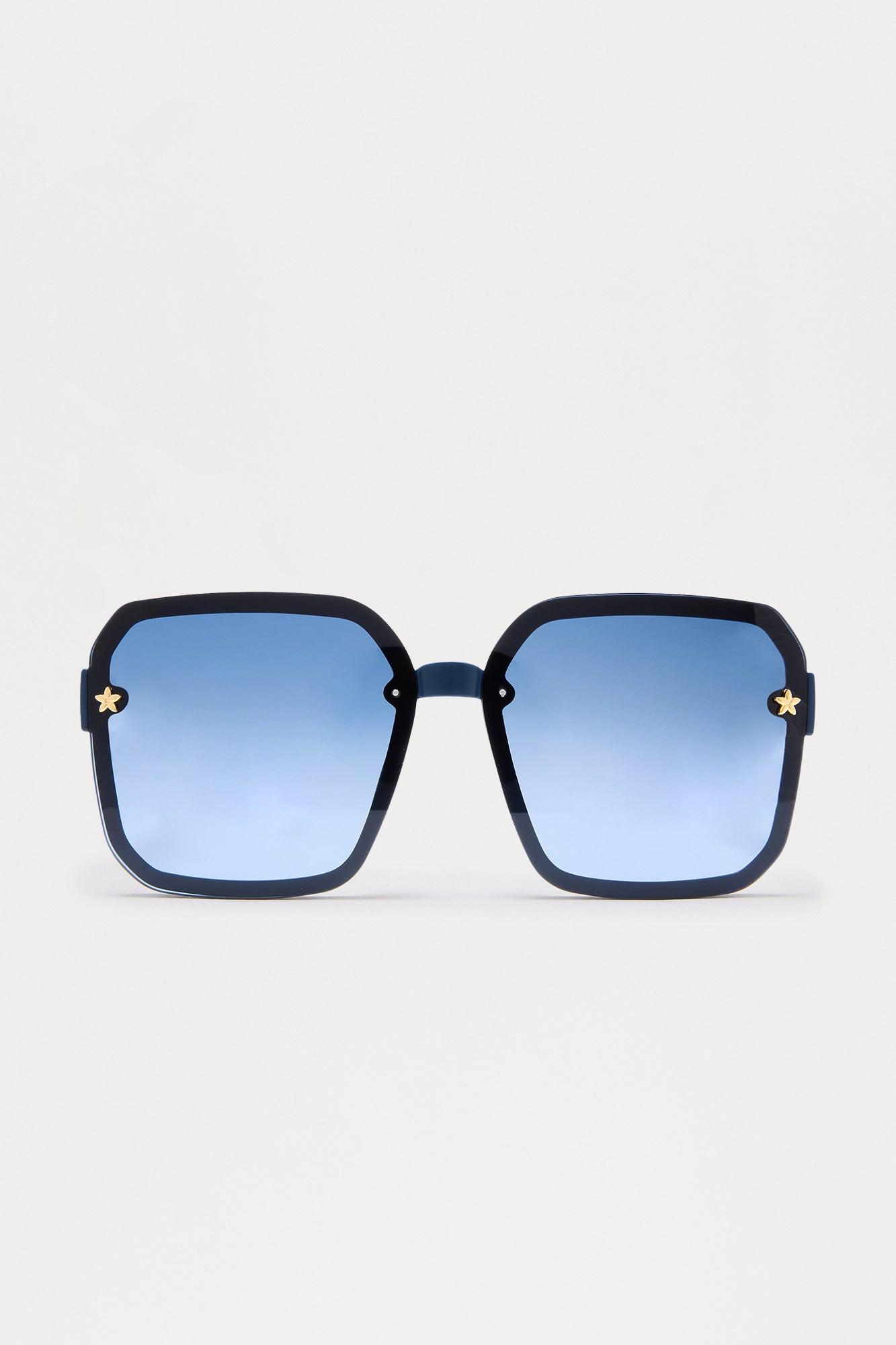 Available In Navy. Square Sunglasses Plastic Frame Colored Lens Start Detail Temple Detail Matt Finish Imported California Proposition 65WARNING: Cancer and Reproductive Harm - www.P65Warnings.ca.gov.