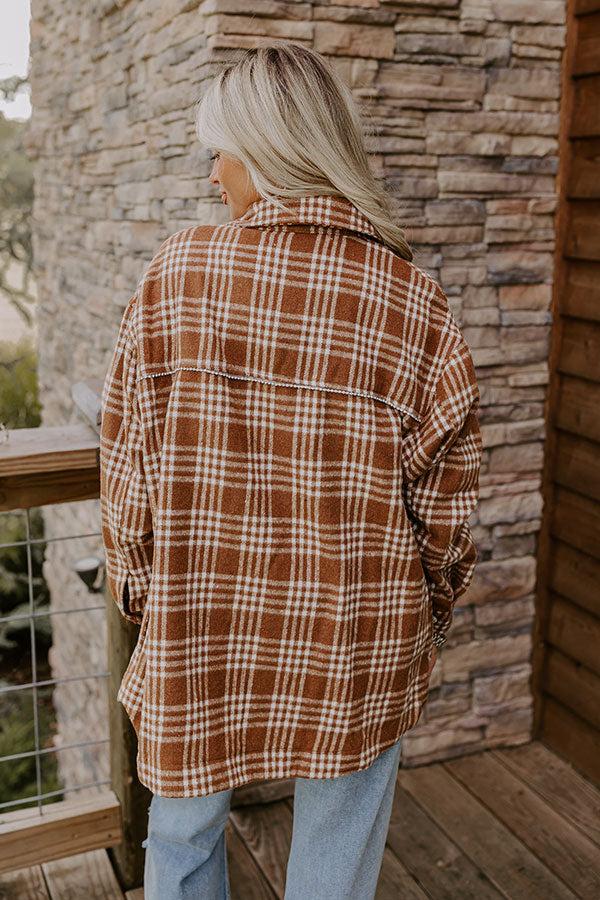 Start The Bonfire Embellished Plaid Jacket in Chocolate