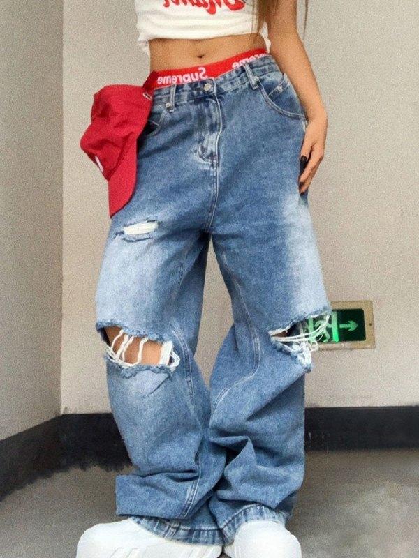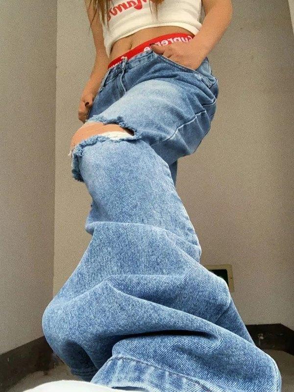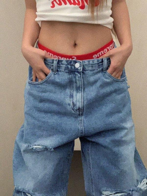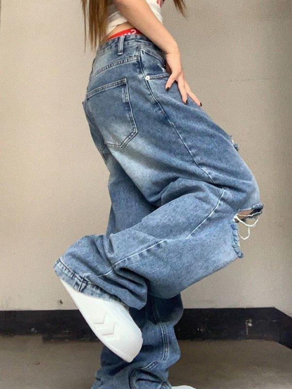 Low-Rise Ripped Medium Wash Baggy Jeans