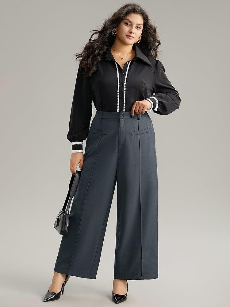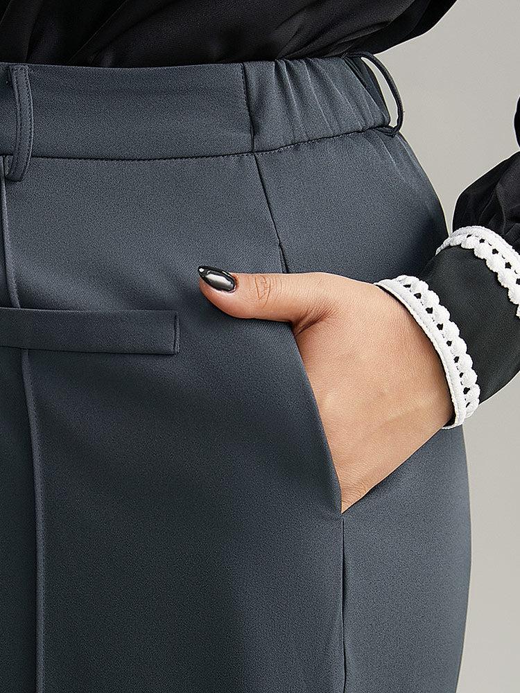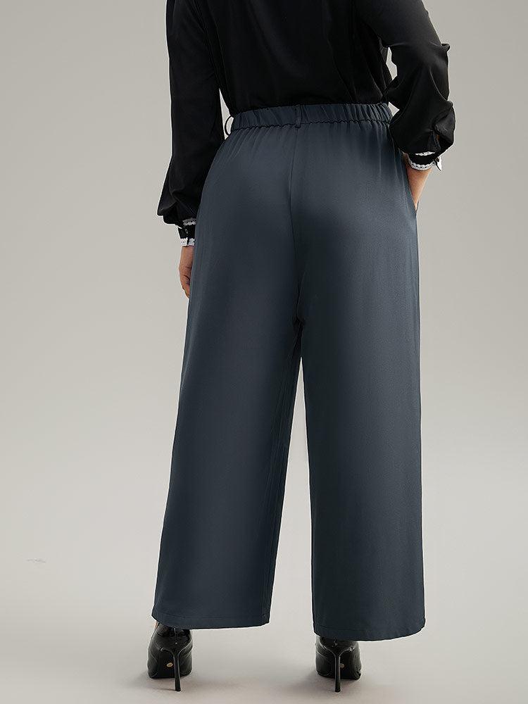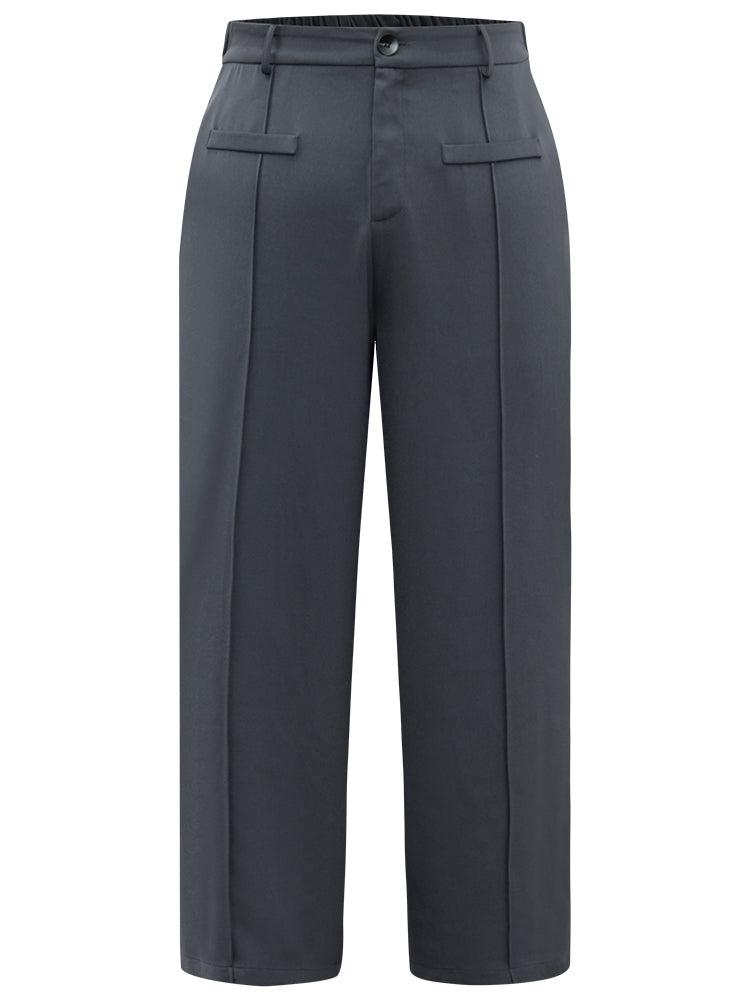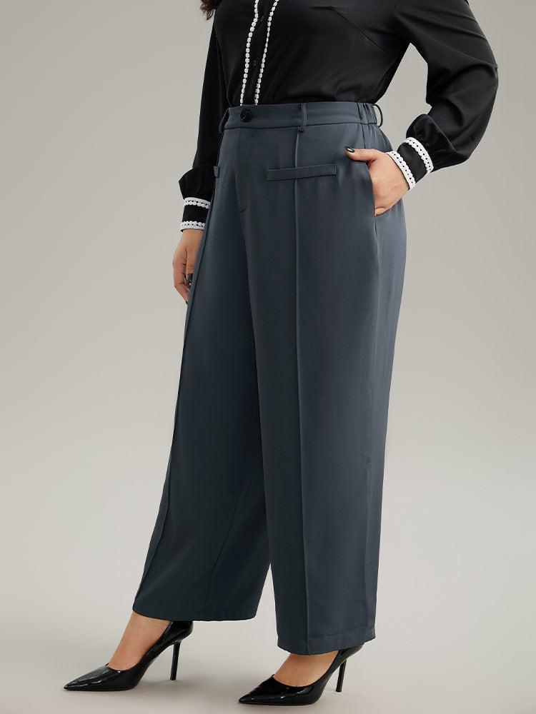 Shop Static-Free Plain High Rise Elastic Waist Pants now and redefine your style with confidence at BloomChic. Tailored for mid and plus-size women. This trendy Bottoms Women, sizes 10-30. Season:Winter;Color:DimGray;Style:Office;Waist Design:High Rise;Pattern Type:Plain;Details:Pocket, Elastic Waist, Pleated, Plain;Pocket:It is perfectly sized to carry a phone.;Belt:No-belt;Closure Type:Button