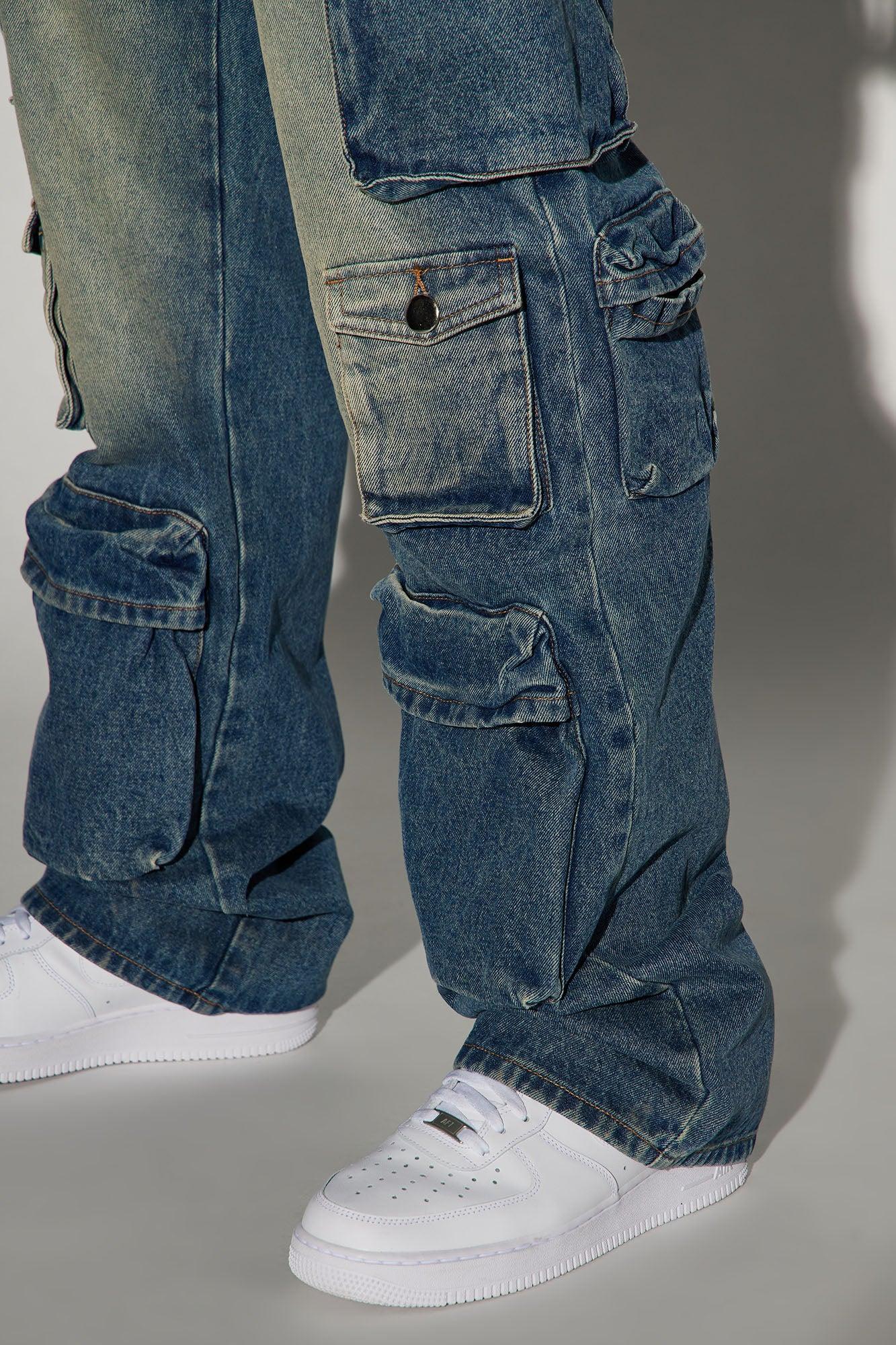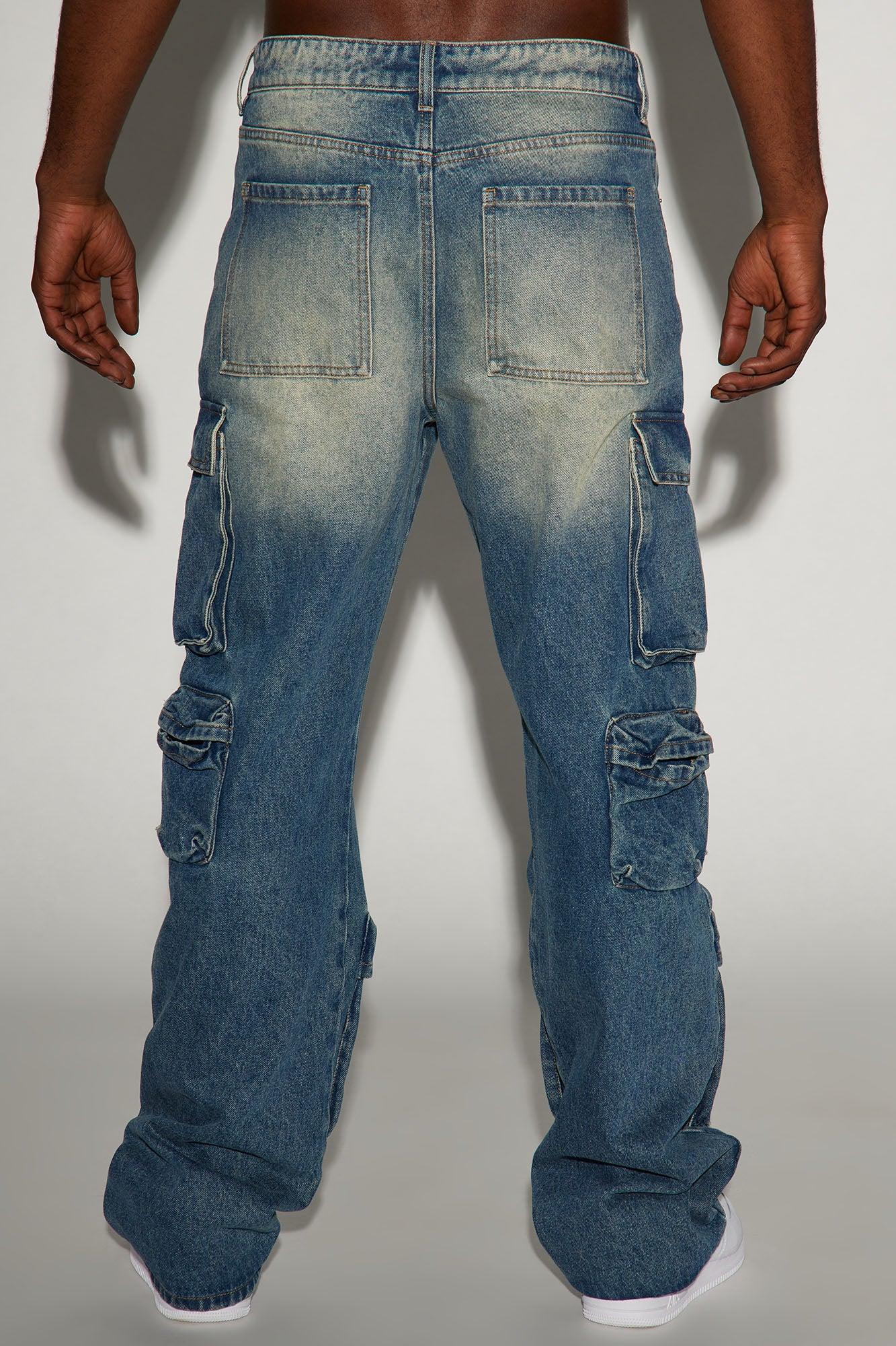 Available In Black And Vintage Blue Wash. Zip Fly Button Closure 5 Pocket Detail Cargo Pockets 100% Cotton Imported California Proposition 65WARNING: Cancer and Reproductive Harm - www.P65Warnings.ca.gov.