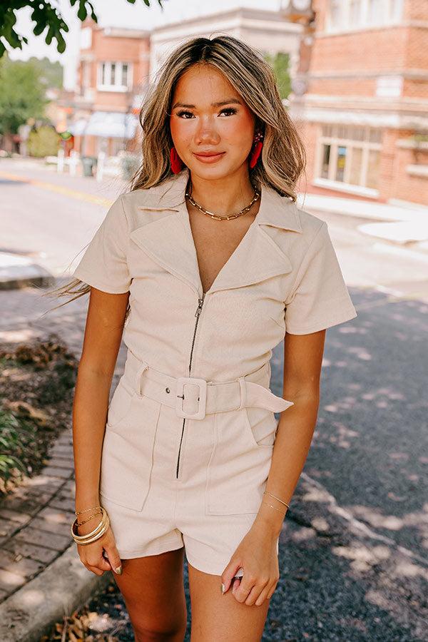 Stay Sophisticated Denim Romper In Light Beige Product Image