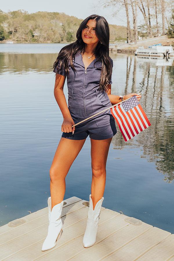 - Keep up your stylish reputation in this trendy romper! - Stretchy denim material - A collared v-cut neckline - Short sleeves - Front zip closure - A waistline with belt loops and a detachable belt - Low front pockets - A figure flattering silhouette that ends in straight upper-thigh length hemlines - This piece is perfect for fans of Virginia, Michigan, Notre Dame, Penn State, Florida, Auburn, and more! Measurements S : Bust 32", Hip 32", Inseam 2.5", Length 30.5", Sleeve Length 7", Waist 28". M : Bust 34", Hip 34", Inseam 2.5", Length 30.5", Sleeve Length 7.5", Waist 30". L : Bust 36", Hip 36", Inseam 2.5", Length 31", Sleeve Length 8", Waist 32".