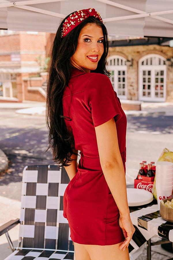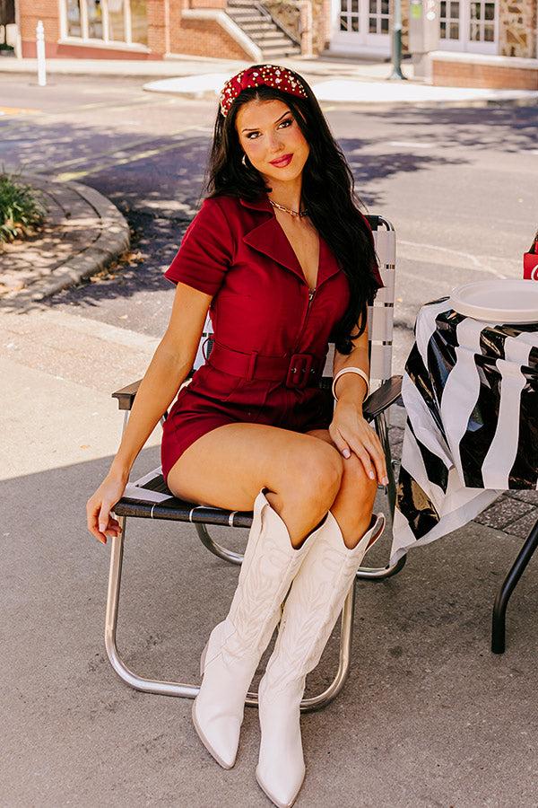 - Keep up your stylish reputation in this trendy romper! - Stretchy denim material - A collared v-cut neckline - Short sleeves - Front zip closure - A waistline with belt loops and a detachable belt - Low front pockets - A figure flattering silhouette that ends in straight upper-thigh length hemlines