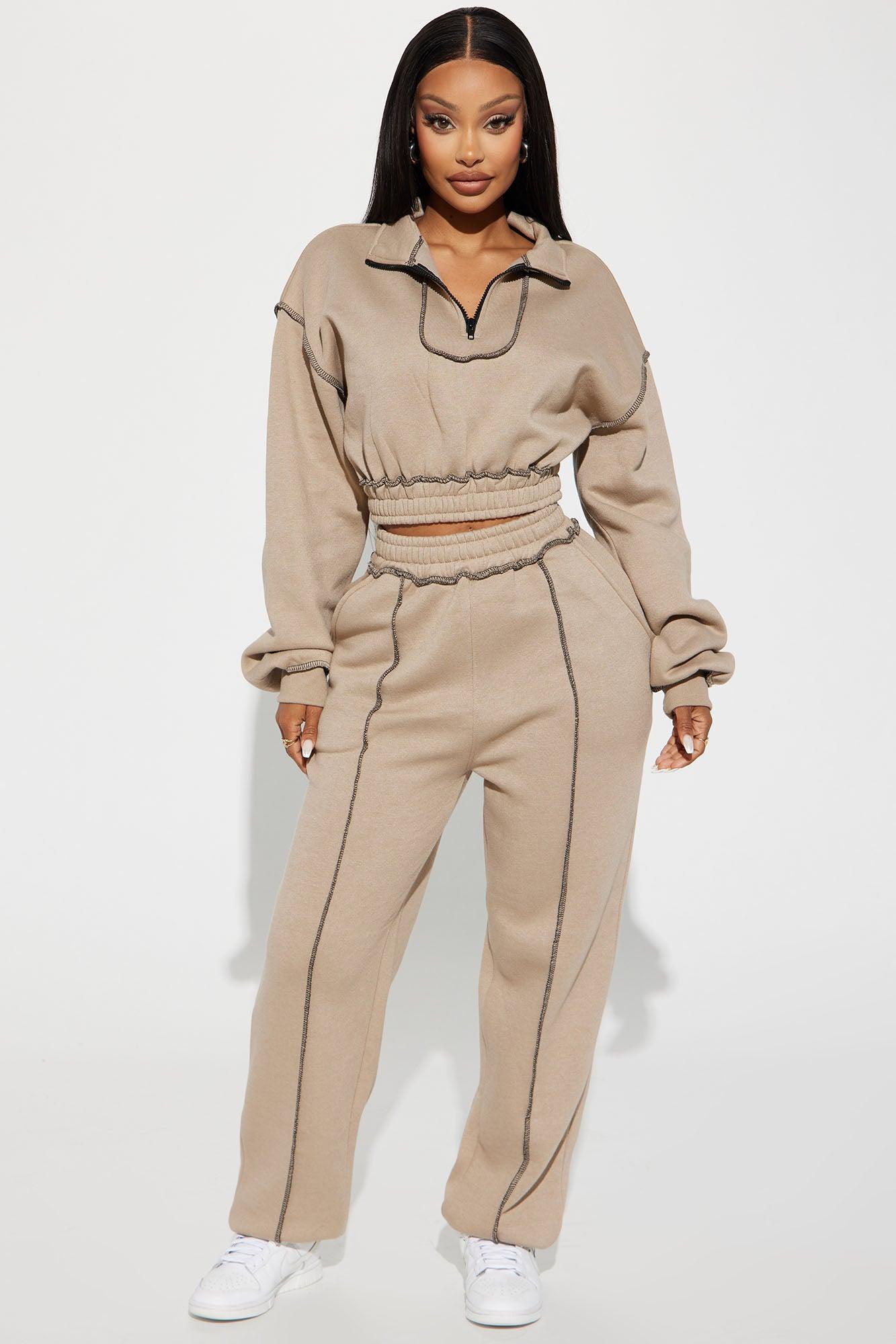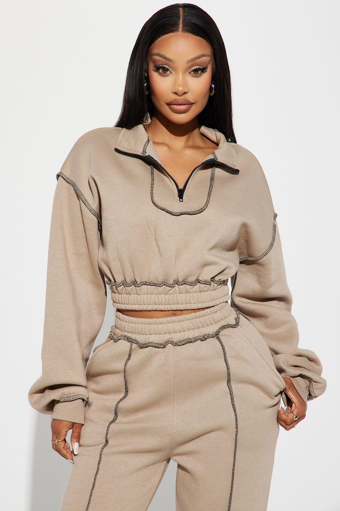 Staying Connected Half Zip Lounge Jacket - Taupe