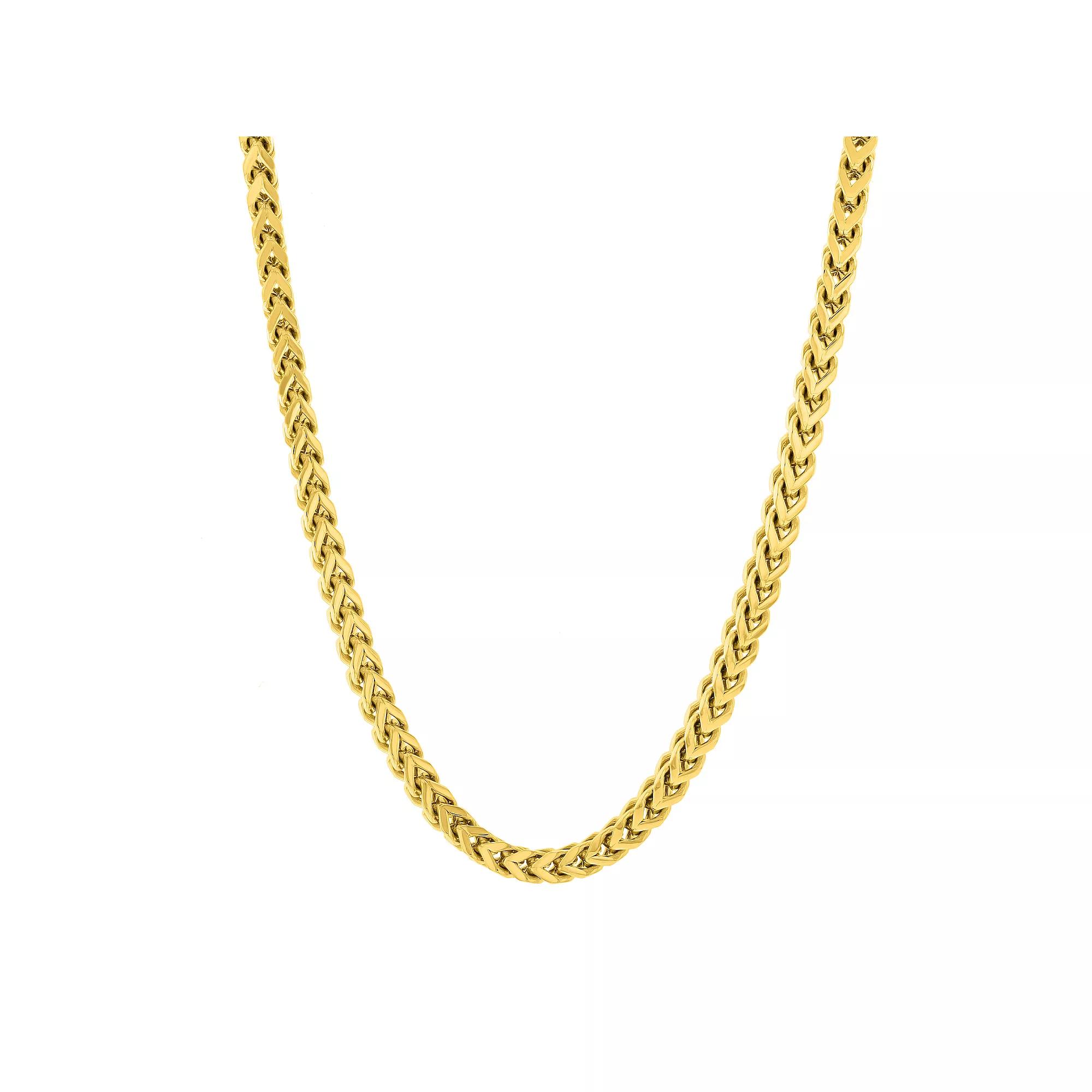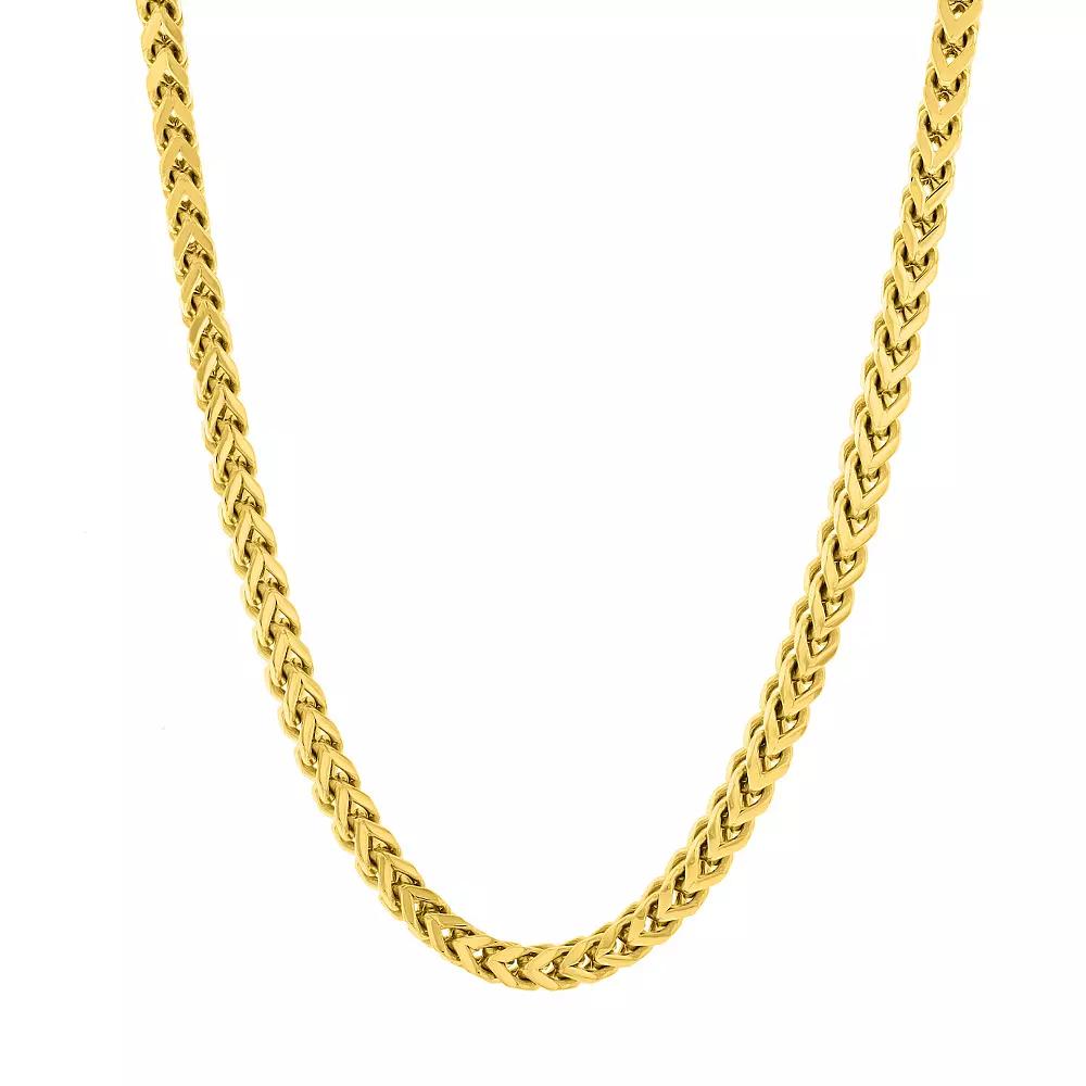 Add a cool new element to your daily look with this gold tone ion-plated stainless steel franco link chain necklace. Add a cool new element to your daily look with this gold tone ion-plated stainless steel franco link chain necklace. Chain length: 24 in. Chain type: franco Clasp: lobster-claw Metal: stainless steel Plating: gold tone ion-plated Finish: polished Size: 24". Color: Yellow. Gender: male. Age Group: adult.