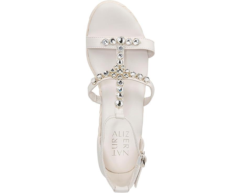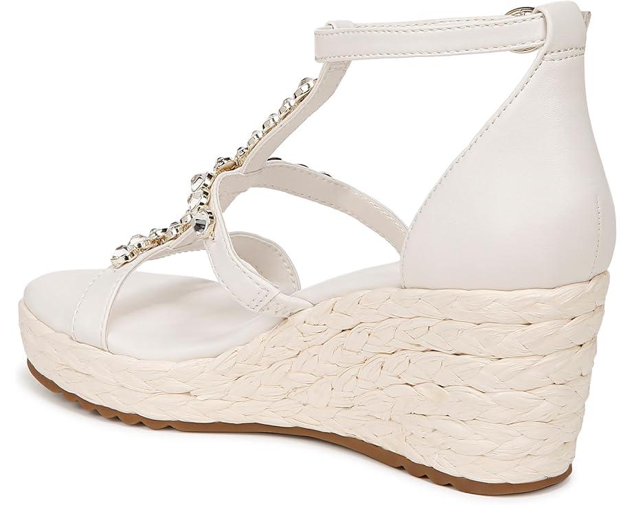 Get a next-level gleaming party look donning the Naturalizer® Serena Ankle Straps. This wedge sandals feature sparkling stone embellishments on the straps for a splashy touch, contour+ comfort technology for a premium fit, and synthetic and metallic upper.