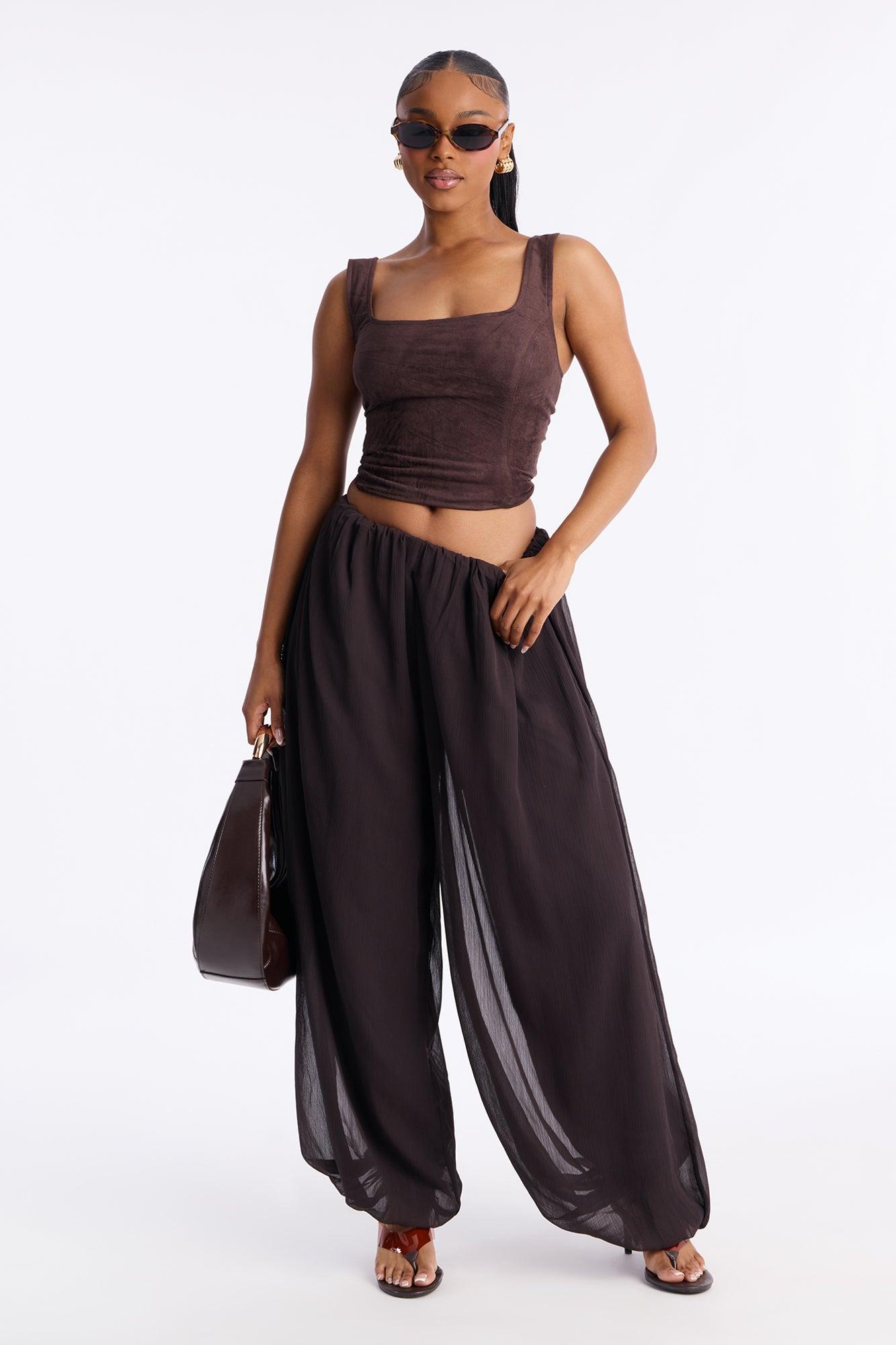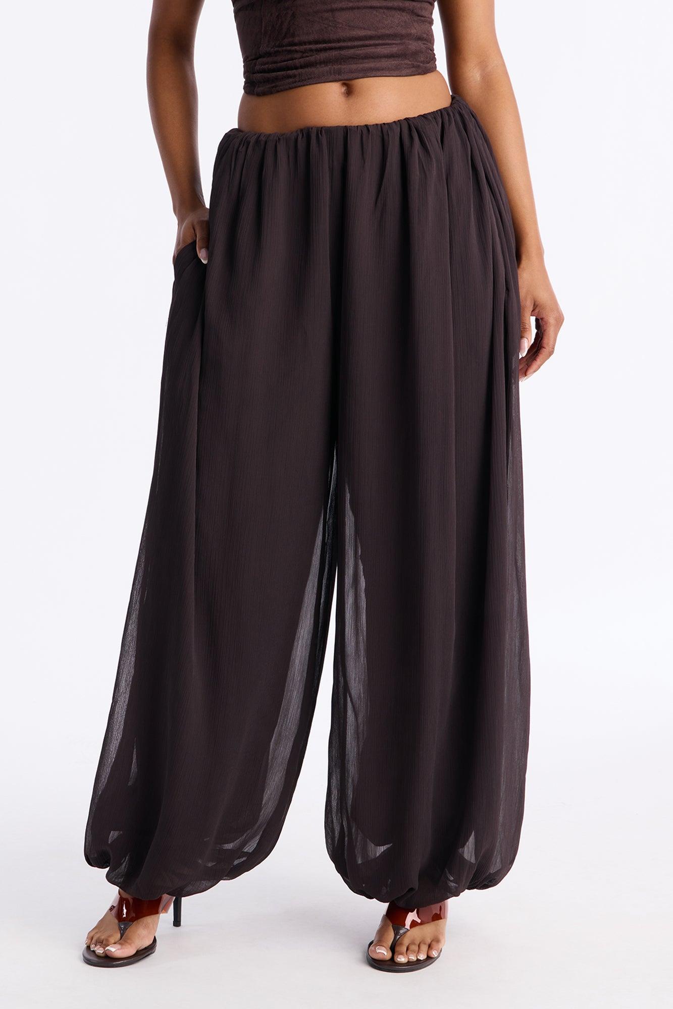 Stella Chiffon Balloon Pants 29″ - Chocolate Female