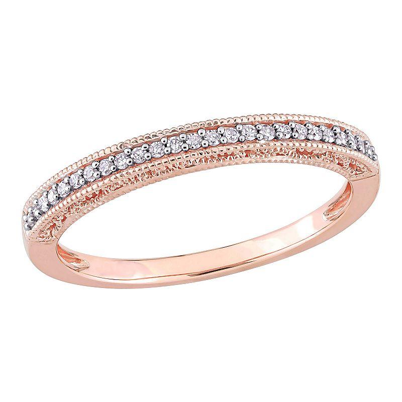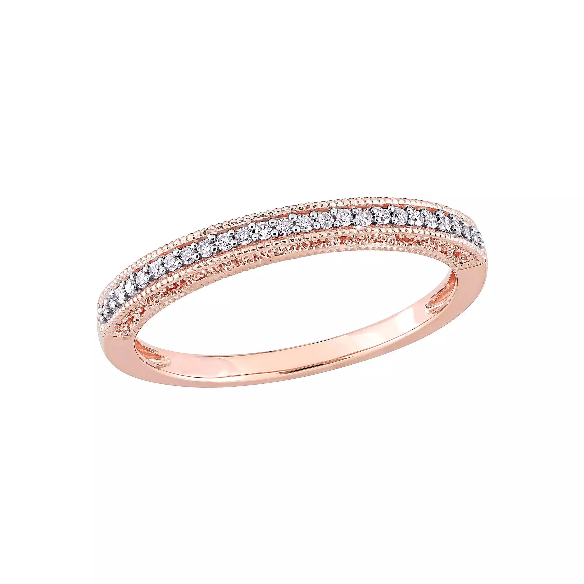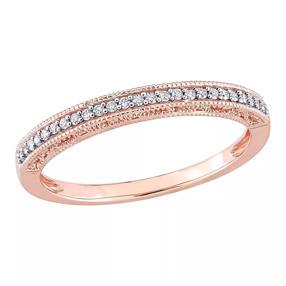 Featuring a row of dazzling diamonds, an open-worked bridge and milgrain details, this 10k gold anniversary ring is an elegant symbol of your commitment.Click on this JEWELRY & WATCHES GUIDE to learn about fit, styles, materials and more! Metal: 10k gold Finish: textured Packaging: boxedDIAMOND DETAILS Total weight: 1/10 ct. Color grade: G-I Clarity: I2-I3 Shape: round Setting: pave Gemstones may have been treated to enhance their appearance. Special care may be required. Please visit our Gemstone Treatment & Special Care Guide for more information. Diamond weights are approximate. Diamond total weights may vary between .01 and .08 ct. Some diamonds have fewer than 17 facets. Image(s) may be enlarged to show detail. Please note, due to the high value of this item, a signature may be required upon delivery. Size: 8.50. Color: White. Gender: female. Age Group: adult.