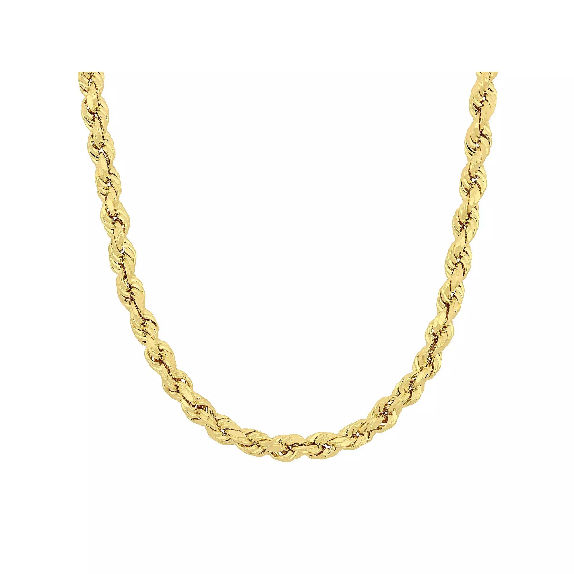 Accessorize in style with this Stella Grace 10k Gold Mens Rope Chain Necklace. Click on this JEWELRY & WATCHES GUIDE to learn about fit, styles, materials and more! Accessorize in style with this Stella Grace 10k Gold Mens Rope Chain Necklace. Click on this JEWELRY & WATCHES GUIDE to learn about fit, styles, materials and more! FEATURES Chain length: 20 in., 22 in., 24 in. Chain type: rope Chain width: 5 mm Total weight: 10.95 g, 10.2 g, 9.4 g Clasp: lobster-claw Nickel free Metal: 10k gold Plating: 10k gold Finish: polished Packaging: boxed Size: 20. Gender: male. Age Group: adult.
