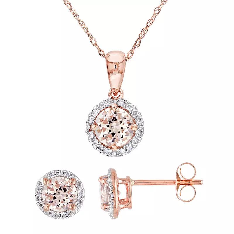 Stella Grace 10k Rose Gold Morganite & 1/6 Carat T.W. Diamond Halo Stud Earrings & Necklace Set, Women's,  Product Image