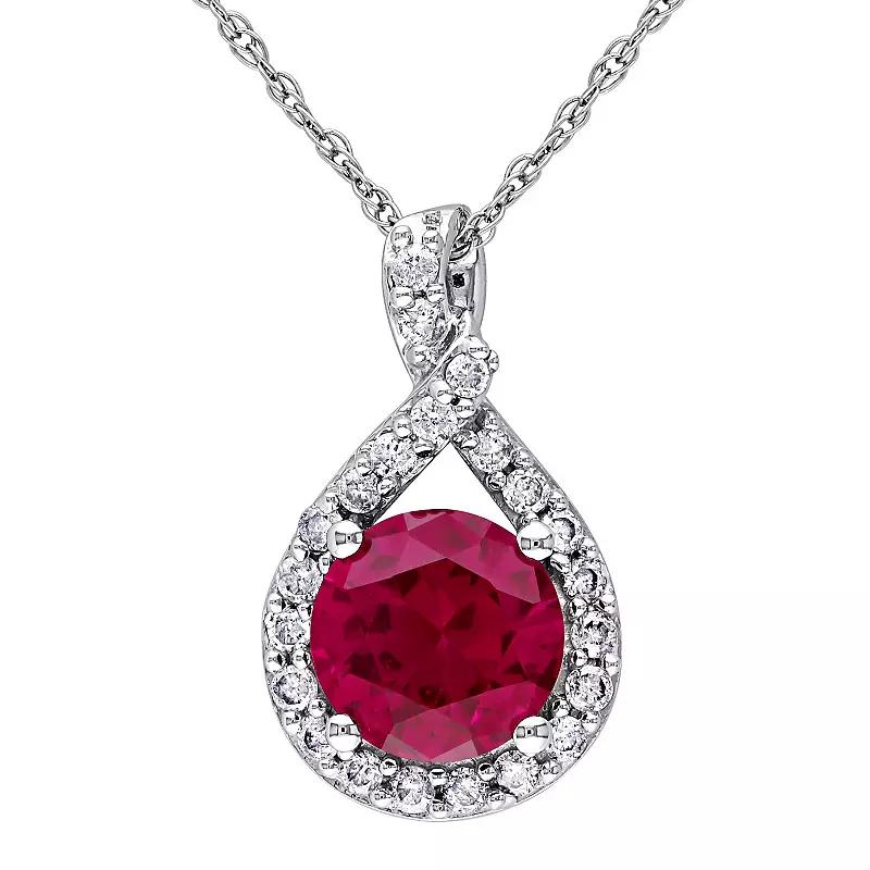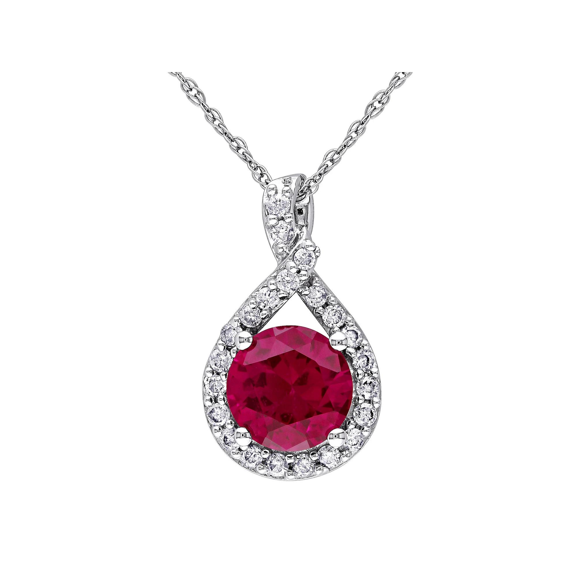 Featuring dazzling diamonds and a lab-created ruby center, this 10k white gold teardrop pendant necklace is the perfect way to finish any special outfit. Featuring dazzling diamonds and a lab-created ruby center, this 10k white gold teardrop pendant necklace is the perfect way to finish any special outfit. Pendant size: 0.68"L x 0.40"W Chain length: 17 in. Chain type: rope Metal: 10k white gold Plating: rhodium Finish: polished Packaging: boxedSTONE DETAILS Stone type: lab-created ruby Total weight: 1 5/8 ct. Shape: round Setting: prongDIAMOND DETAILS Total weight: 1/4 ct. Shape: round Setting: pave Gemstones may have been treated to enhance their appearance. Special care may be required. Please visit our Gemstone Treatment & Special Care Guide for more information. Please note, due to the high value of this item, a signature may be required upon delivery. Diamond weights are approximate. Diamond total weights may vary between .01 and .08 ct. Some diamonds have fewer than 17 facets. Image(s) may be enlarged to show detail. Size: 17". Gender: female. Age Group: adult.
