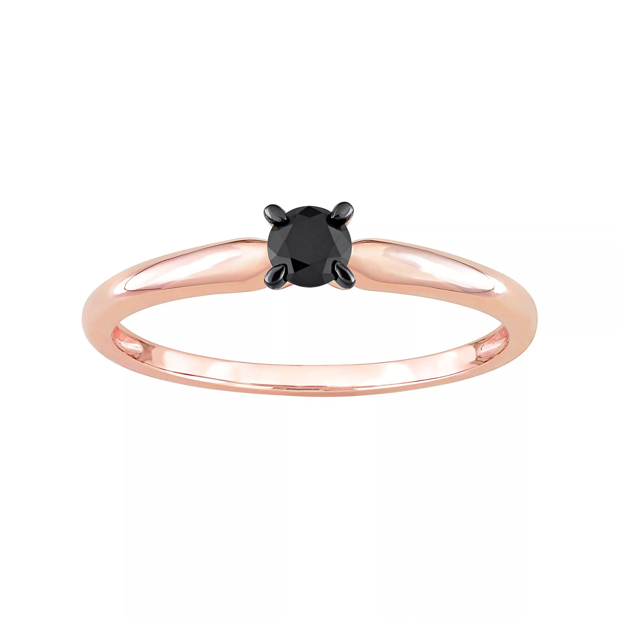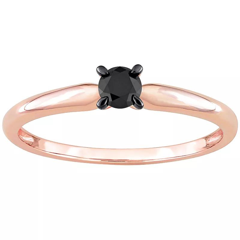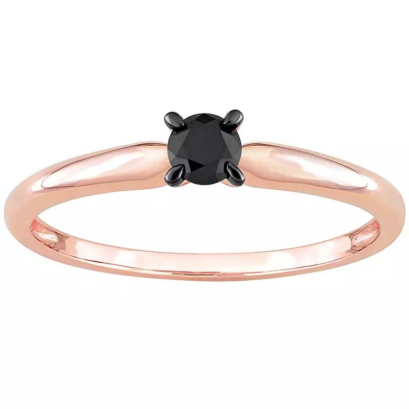 Crafted from 14k rose gold, and adorned with a stunning, round-cut black diamond, this Stella Grace solitaire engagement ring beautifully celebrates your lifelong commitment. Crafted from 14k rose gold, and adorned with a stunning, round-cut black...