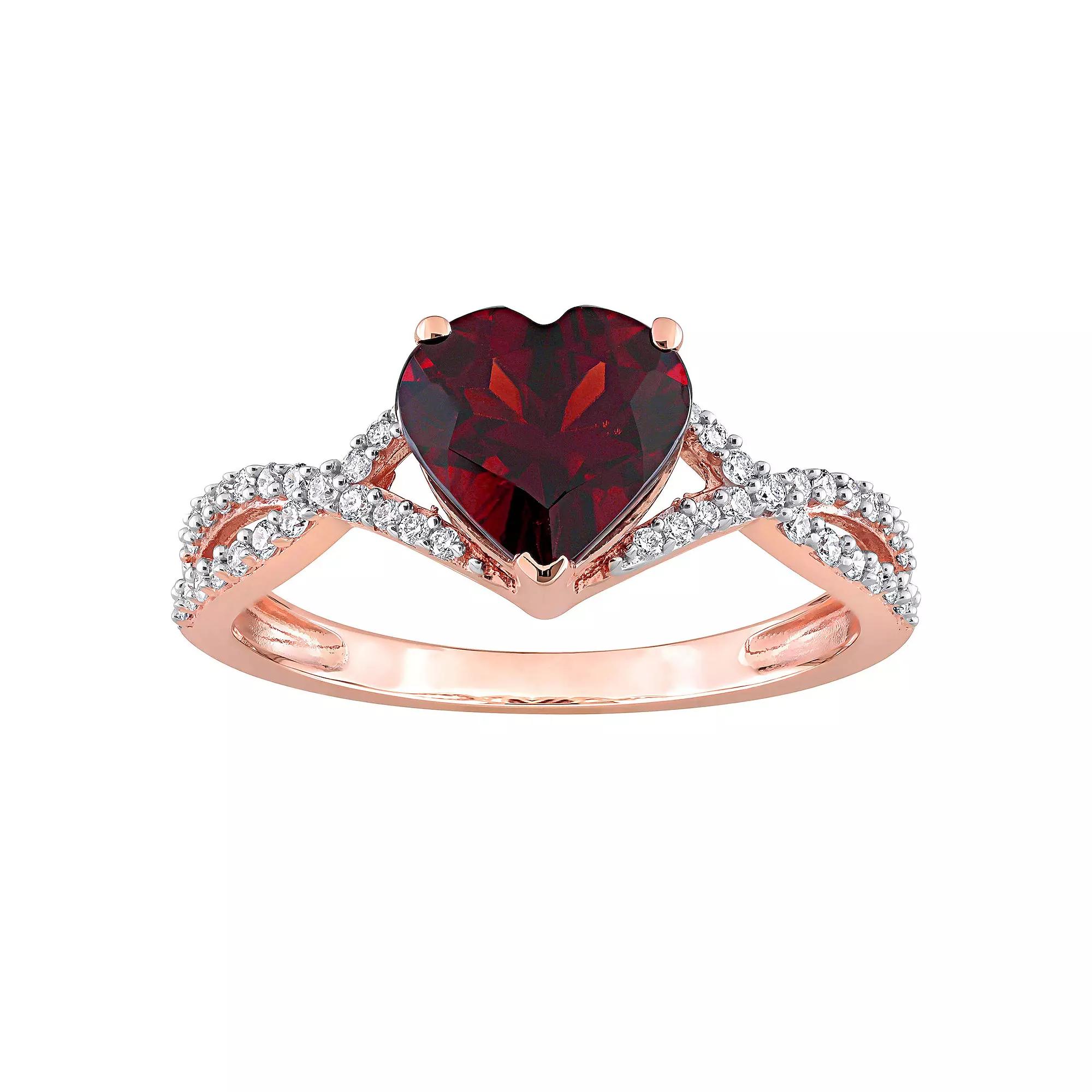 Featuring a heart-shaped garnet center stone complemented with shimmering diamond accents, this Stella Grace engagement ring radiates romance. Featuring a heart-shaped garnet center stone complemented with shimmering diamond accents, this Stella Grace engagement ring radiates romance. Metal: 14k rose gold Packaging: boxed Width: 8.3 mm Finish: polishedSTONE DETAILS Stone type: garnet Total weight: 2 ct. Center stone size: 8 mm x 8 mm Shape: heart Setting: prongDIAMOND DETAILS Total weight: 1/5 ct. Shape: round Setting: prong Diamond weights are approximate. Diamond Total Weights may vary between .01 and .13 ct. Some diamonds consist of fewer than 17 facets. Gemstones may have been treated to enhance their appearance. Special care may be required. Please visit our Gemstone Treatment & Special Care Guide for more information. Image(s) may be enlarged to show detail. Please note, due to the high value of this item, a signature may be required upon delivery. Size: 9. Gender: female. Age Group: adult.