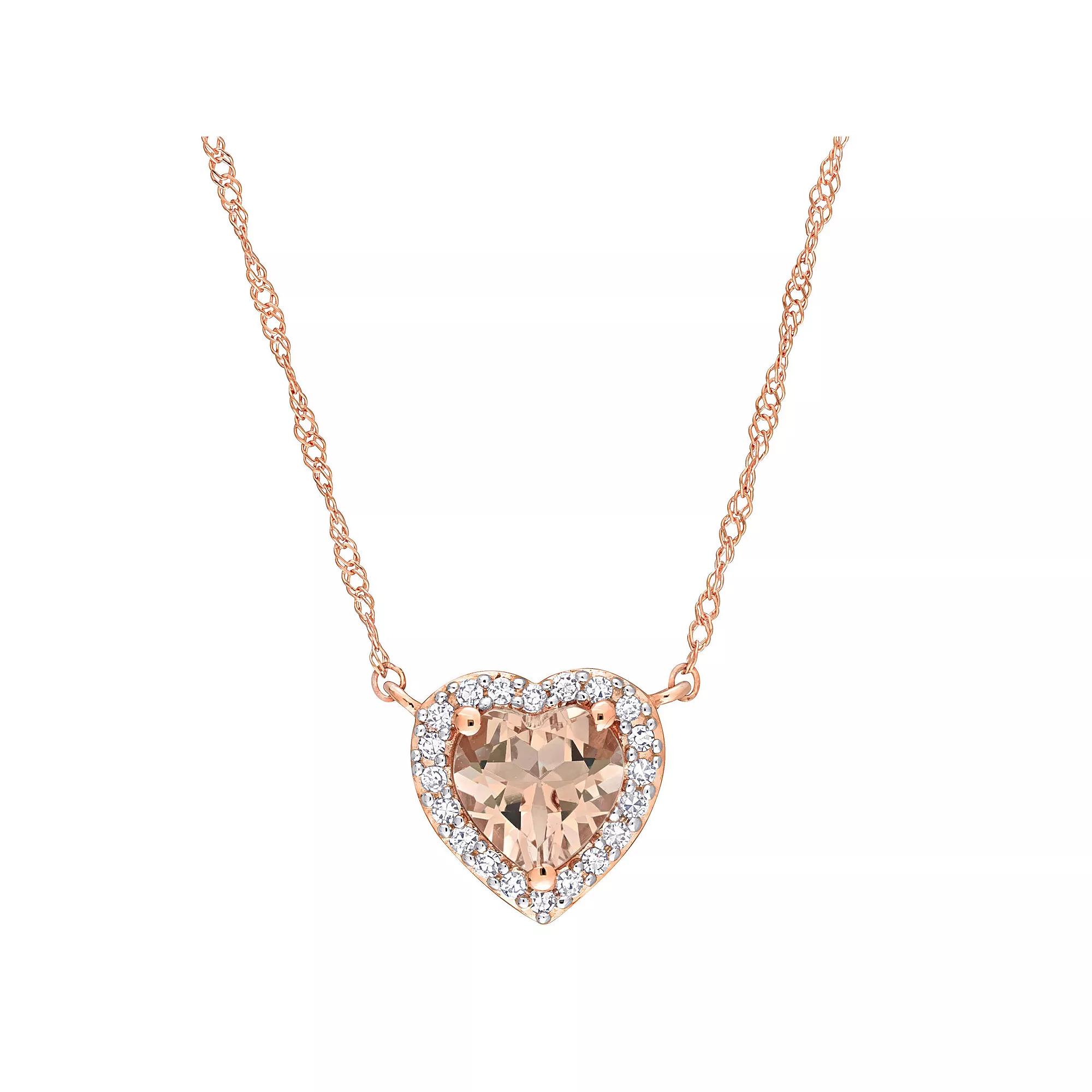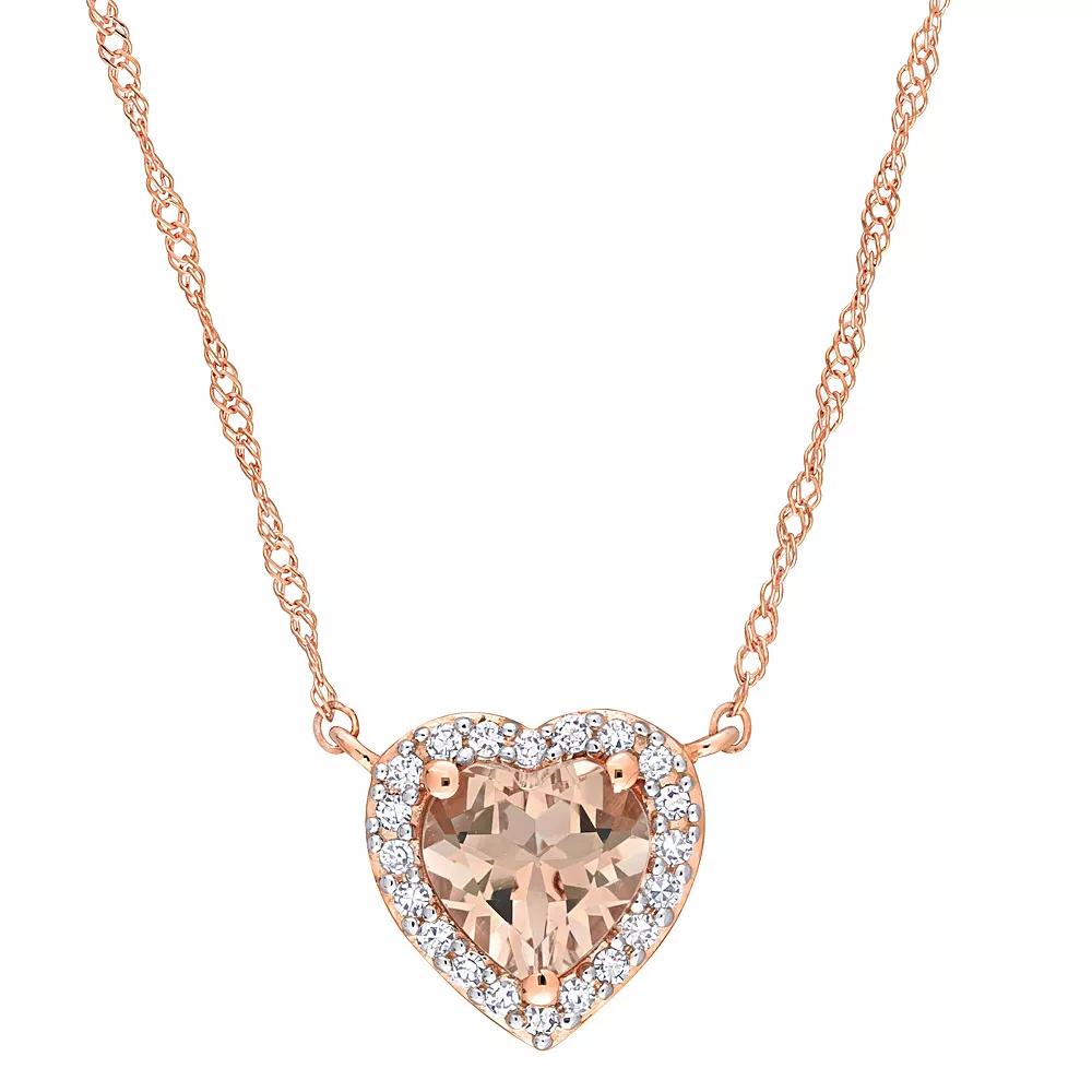 Accessorize your look with this beautiful necklace from Stella Grace. Click on this JEWELRY & WATCHES GUIDE to learn about fit, styles, materials and more! Accessorize your look with this beautiful necklace from Stella Grace. Click on this JEWELRY & WATCHES GUIDE to learn about fit, styles, materials and more! FEATURES Chain type: Singapore Clasp: spring-ring Nickel free Metal: 14k rose gold Plating: 14k rose gold Finish: polished Packaging: boxed Chain Length: 17"STONE DETAILS Stone type: morganite Total weight: 5/8 ct. Center stone weight: 5/8 ct. Center Stone Size: 6 x 6 mm Shape: heart Setting: prongDIAMOND DETAILS Total weight: 1/10 ct. Diamond Color Grade: GHI Diamond Clarity Grade: I1 Shape: round Setting: prong Diamond weights are approximate. Diamond Total Weights may vary between .01 and .13 ct. Some diamonds consist of fewer than 17 facets. Gemstones may have been treated to enhance their appearance. Special care may be required. Please visit our Gemstone Treatment & Special Care Guide for more information. Image(s) may be enlarged to show detail. Please note, due to the high value of this item, a signature may be required upon delivery. Color: Pink. Gender: female. Age Group: adult.