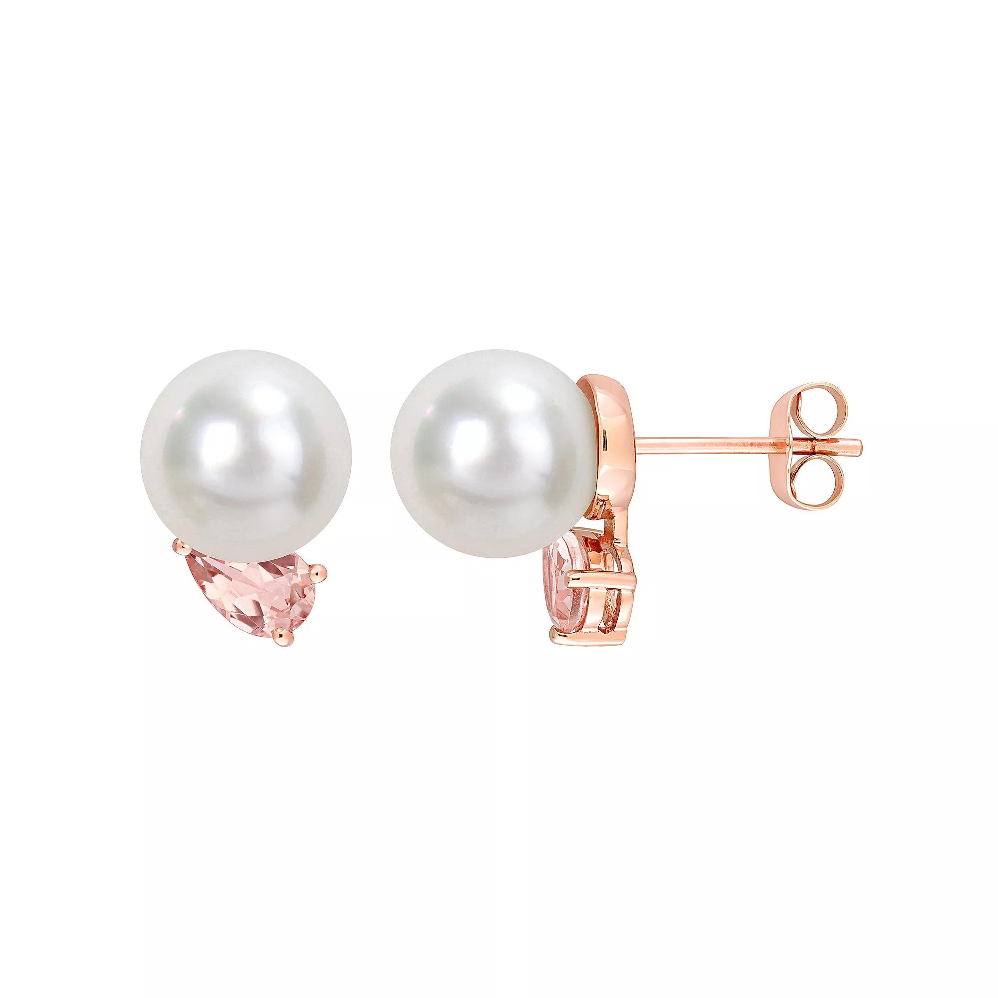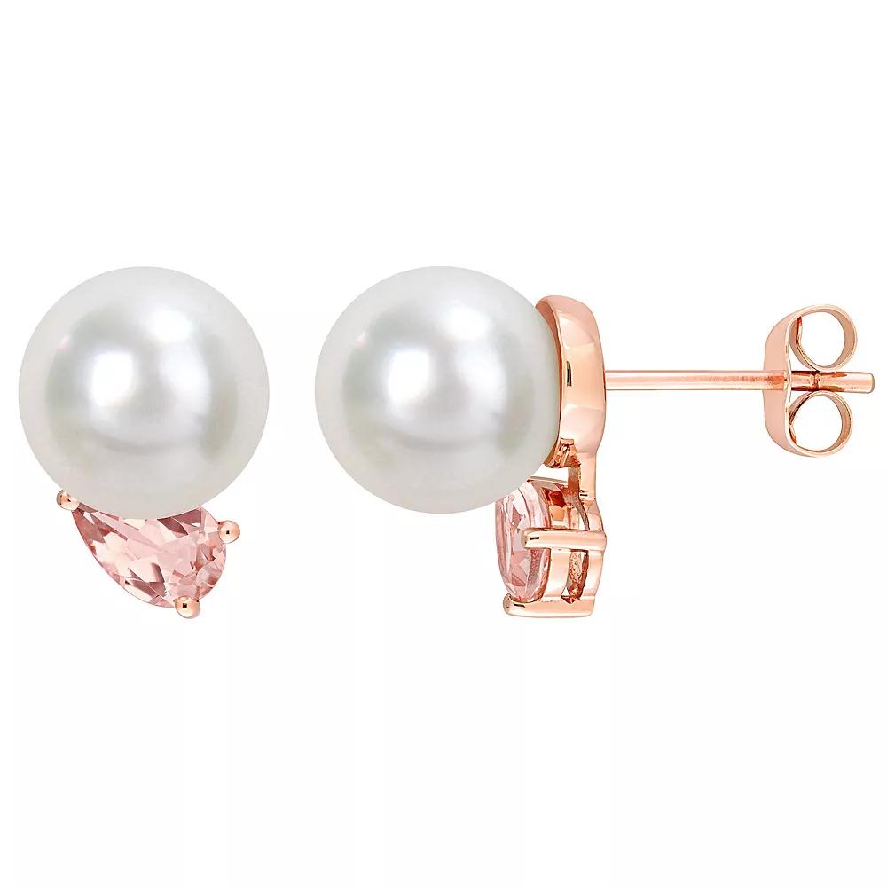 Stella Grace 14k Rose Gold South Sea Cultured Pearl & Morganite Stud Earrings, Women's Product Image