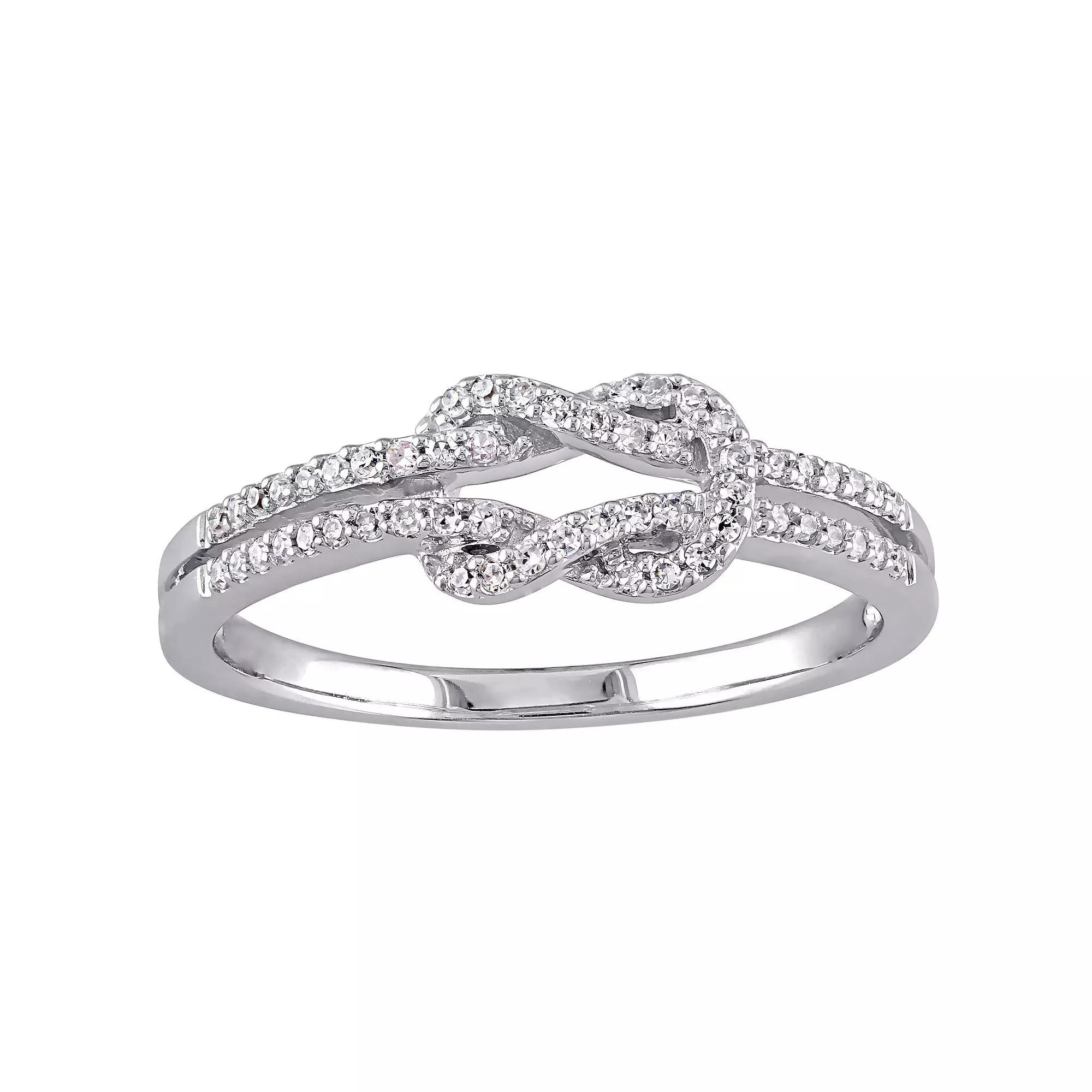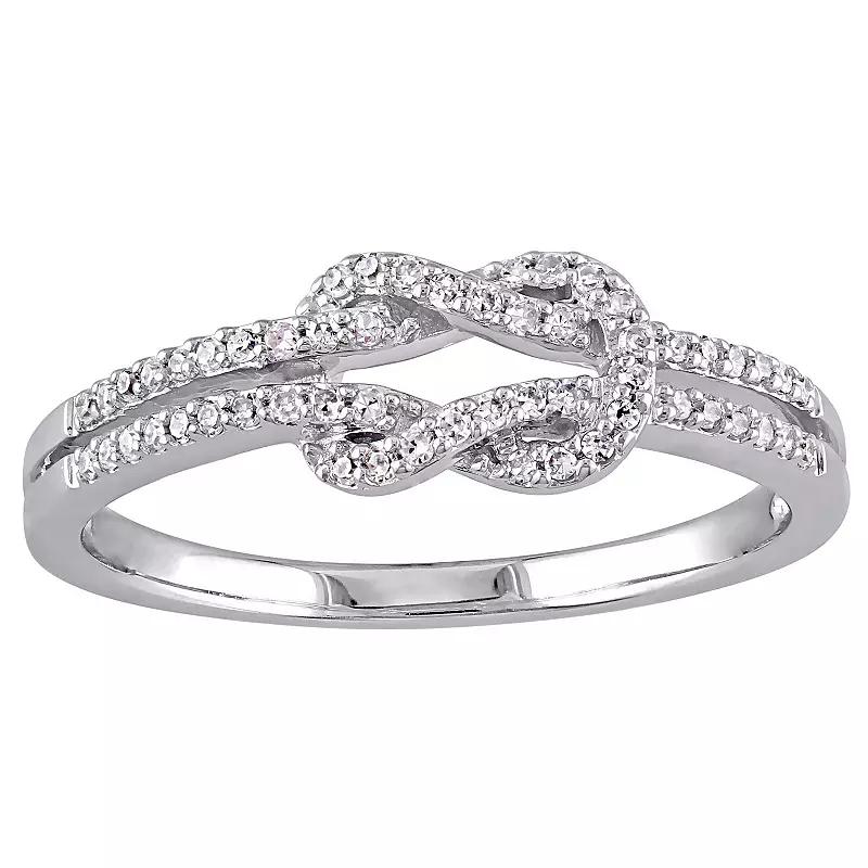 Shimmering round-cut diamonds give this Stella Grace infinity ring unending elegance. Shimmering round-cut diamonds give this Stella Grace infinity ring unending elegance. Width: 6 mm Metal: 14k white gold Plating: rhodium Finish: polished Packaging: boxedDIAMOND DETAILS Total weight: 1/6 ct. Color grade: G-I Clarity: SI1-SI2 Shape: round Setting: prong Gemstones may have been treated to enhance their appearance. Special care may be required. Please visit our Gemstone Treatment & Special Care Guide for more information. Diamond weights are approximate. Diamond total weights may vary between .01 and .08 ct. Some diamonds have fewer than 17 facets. Image(s) may be enlarged to show detail. Please note, due to the high value of this item, a signature may be required upon delivery. Size: 9. Gender: female. Age Group: adult.